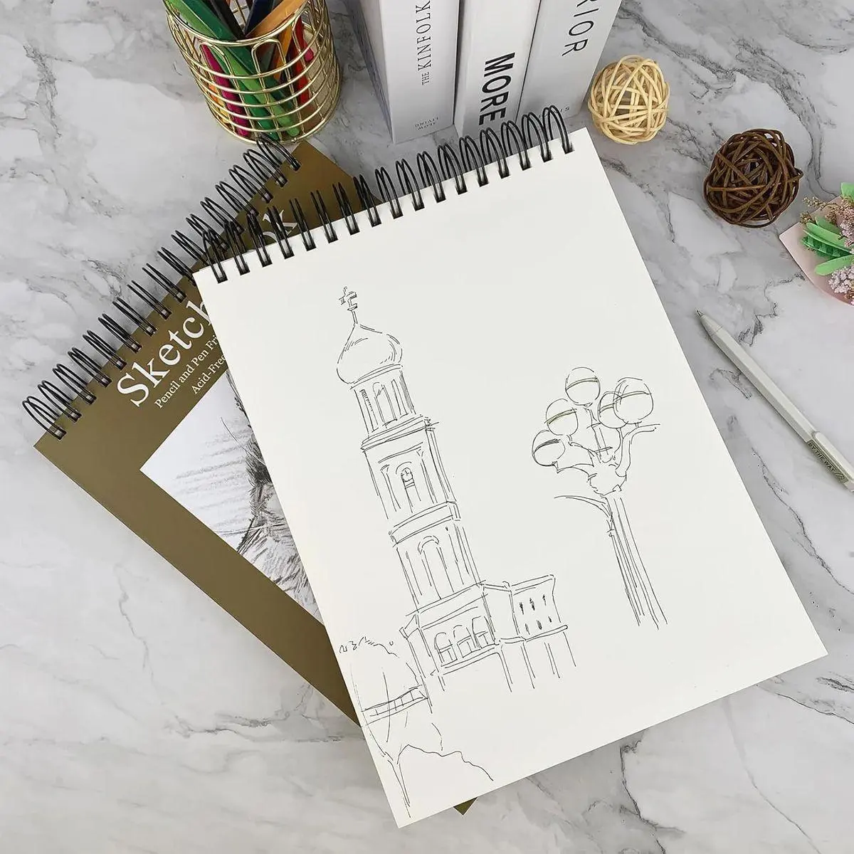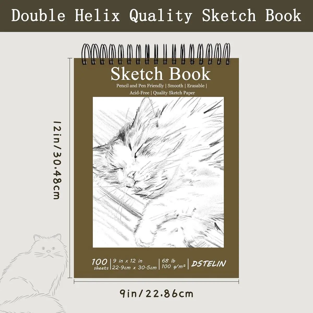 Product Specifications: Measuring 9 x 12 inches, The sketchbook contains 100 sheets of 100gsm acid-free paper.