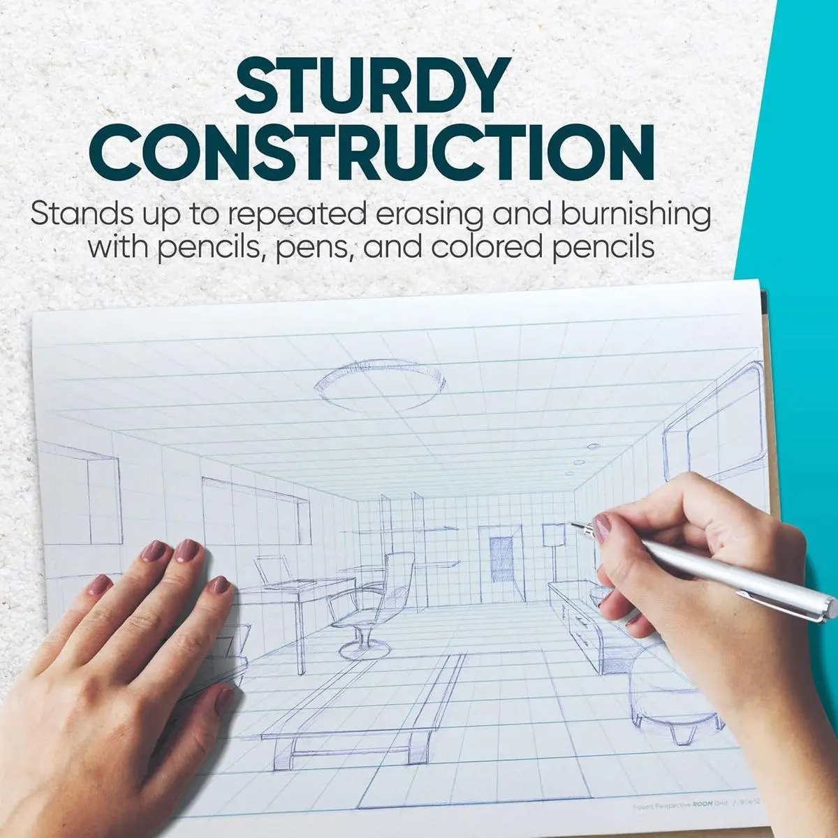 VIRTUAL WALL SKETCH PAD: 1-point perspective grid design allows for drawing realistic room interiors and layouts, as well as architectural landscapes