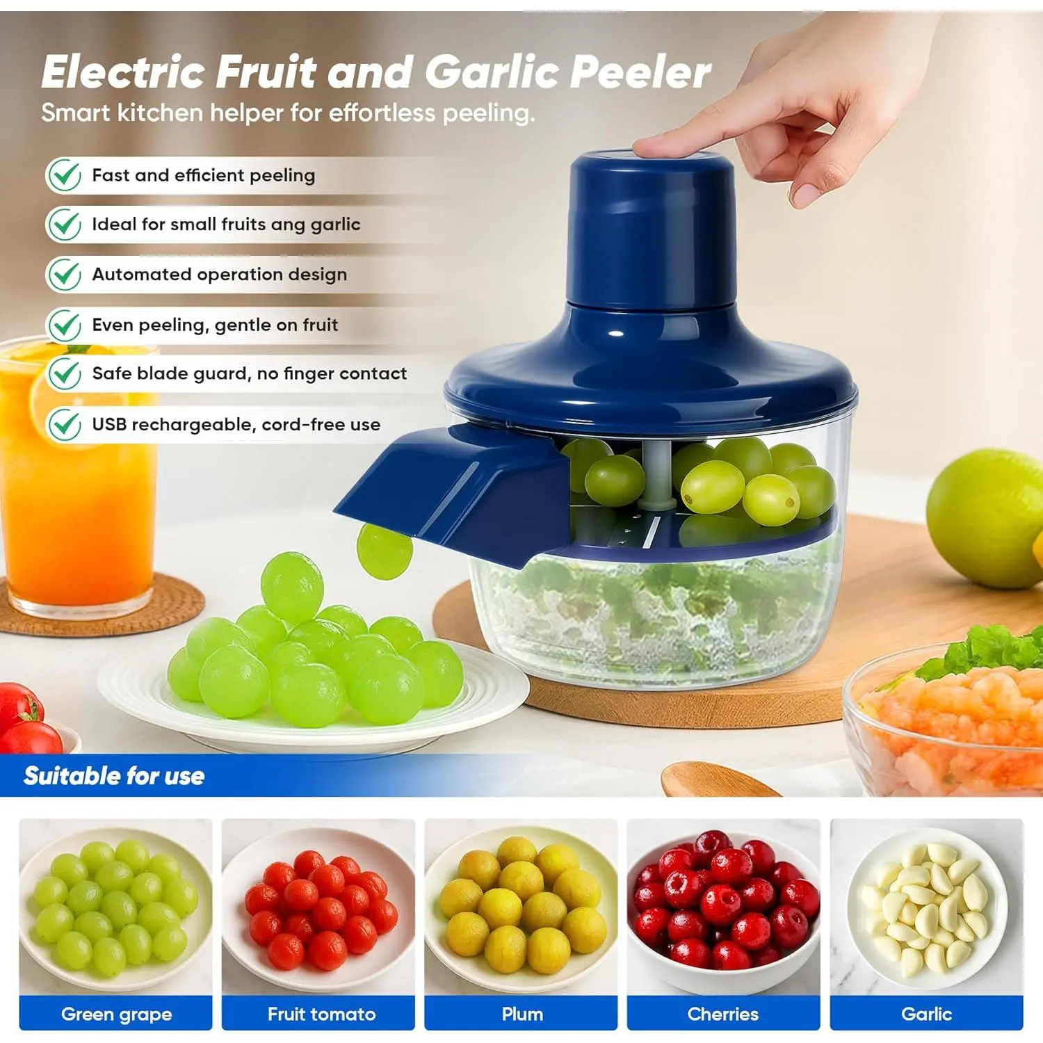 Electric Grape Peeler & Garlic Peeler Machine - Automatic Skin Remover for Cherry Tomatoes & Small Fruits - Portable Rechargeable Small Fruit Peeler Machine for Salads, Baby Food and Kitchen Gadgets