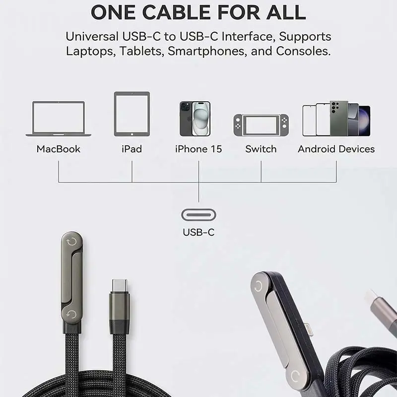 This charger cable is compatible with Type-C charging cables. It is designed for use in gaming, office, car travel, and other settings. The 2-in-1 design makes it a versatile choice for your charging needs.