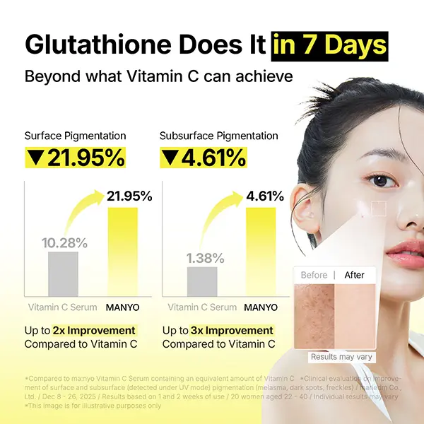 Formulated with Glutathione, a widely used brightening ingredient in K-beauty, this serum helps support a clearer and healthier-looking complexion. Its triple-care approach is designed to improve the look of skin tone balance and overall brightness.