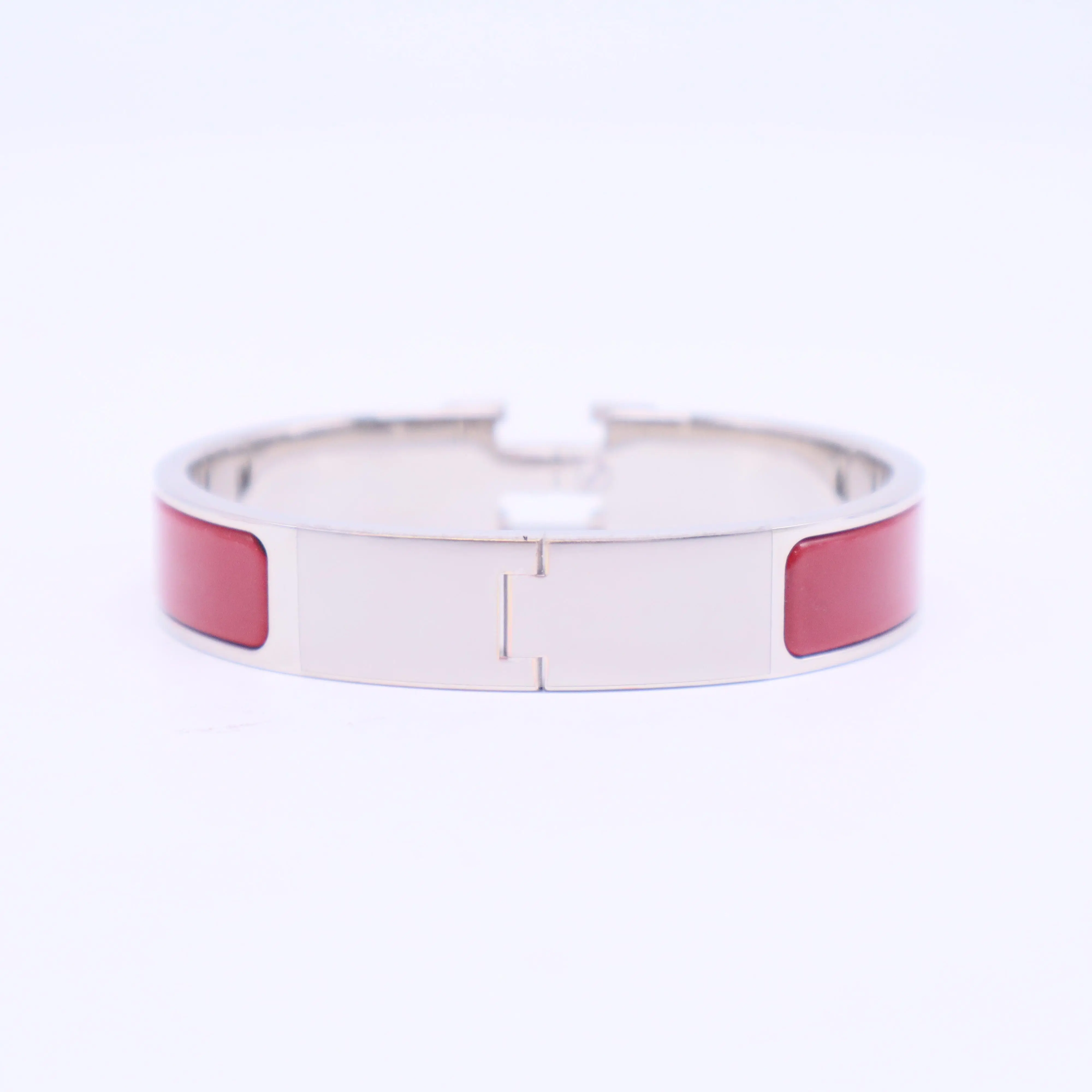 Pre-owned Enamel Printed Wide Caleche Bracelet 65 Rouge H W20597