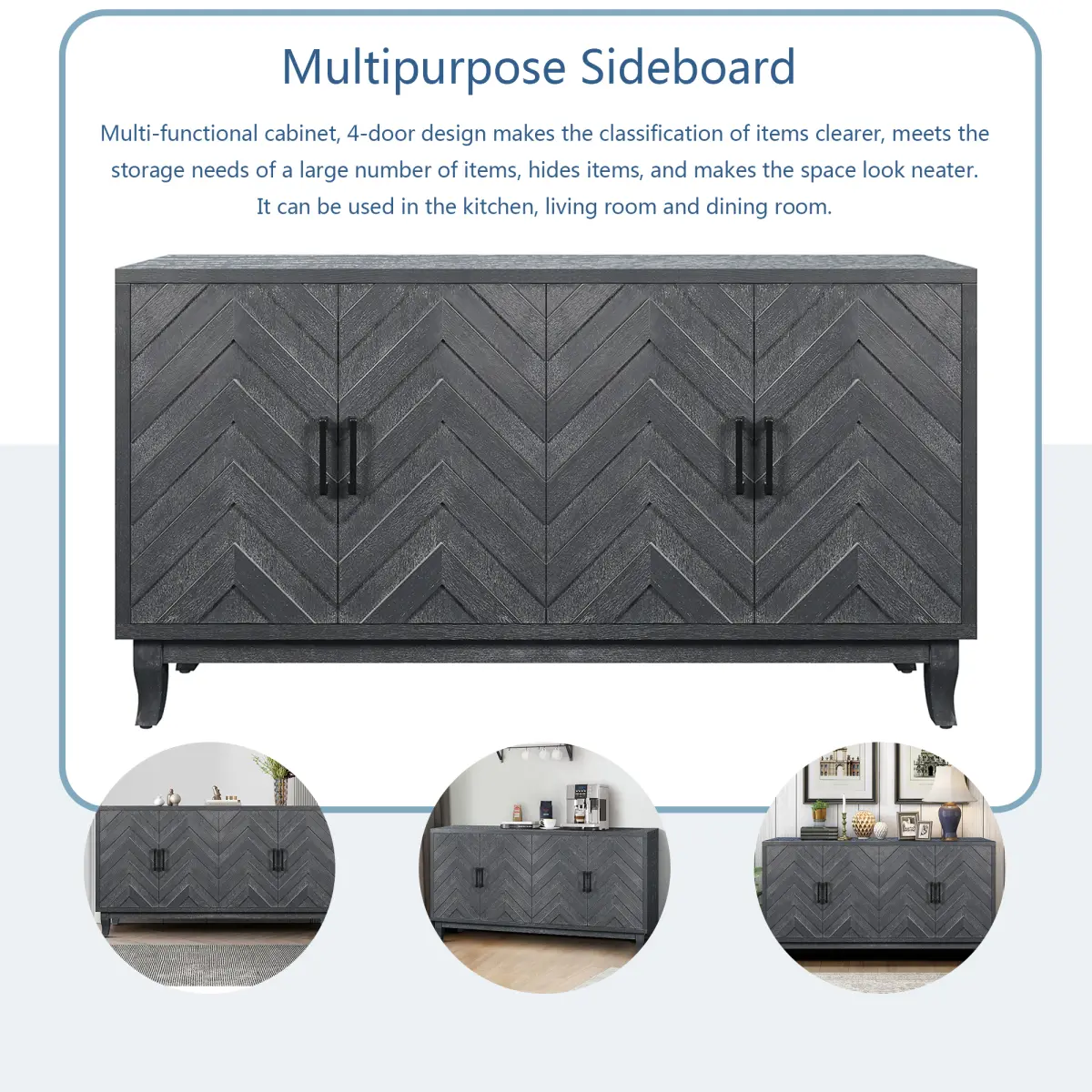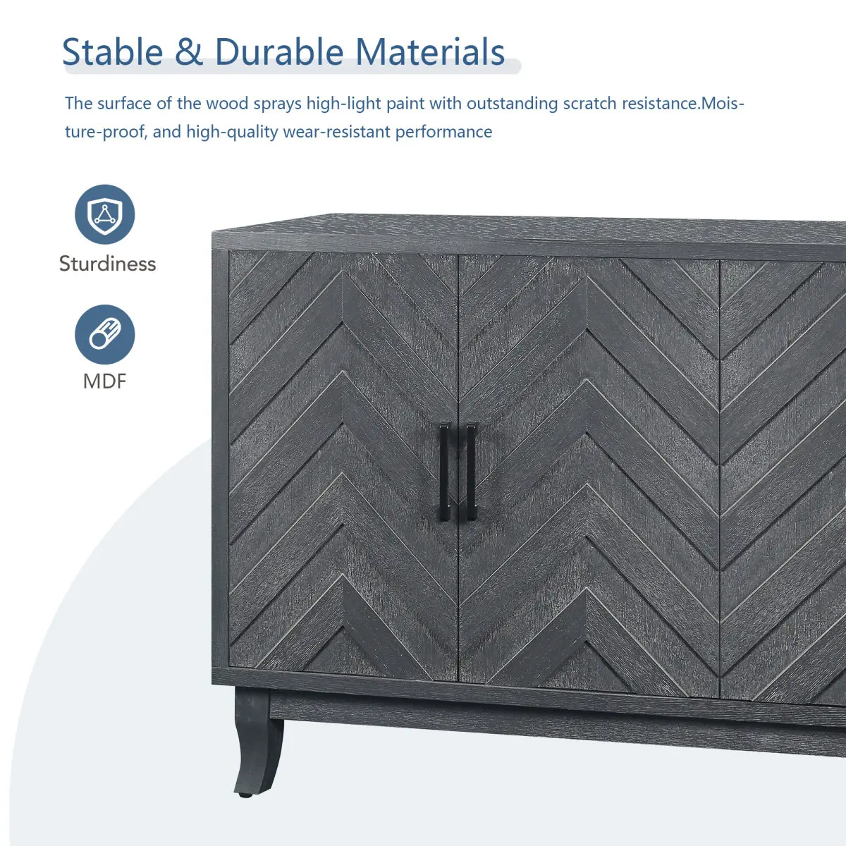 4 Doors Storage Wooden Cabinets 3D Wave Stripes Console Table Sideboard