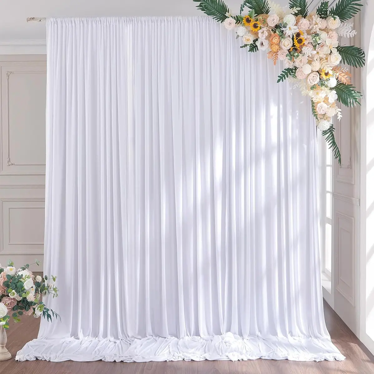 ·Versatile Use for Various Occasions: These high polyester curtains are perfect for a variety of events, including weddings, baby showers, birthday parties, photography sessions, bridal showers, gender reveal parties, baptisms, sweet tables, photo booths, ceremonies, anniversaries, graduations, home decor, and holiday parties.