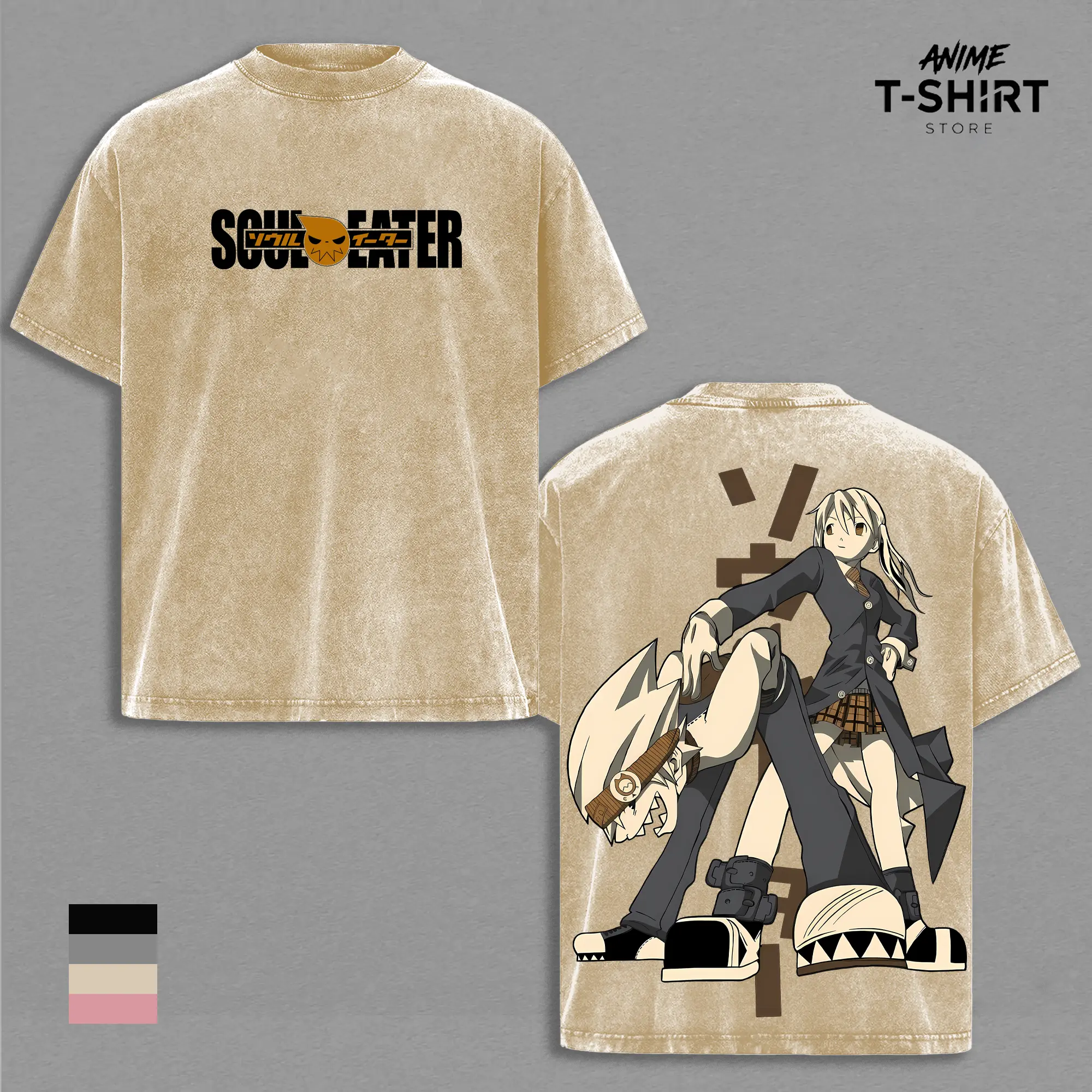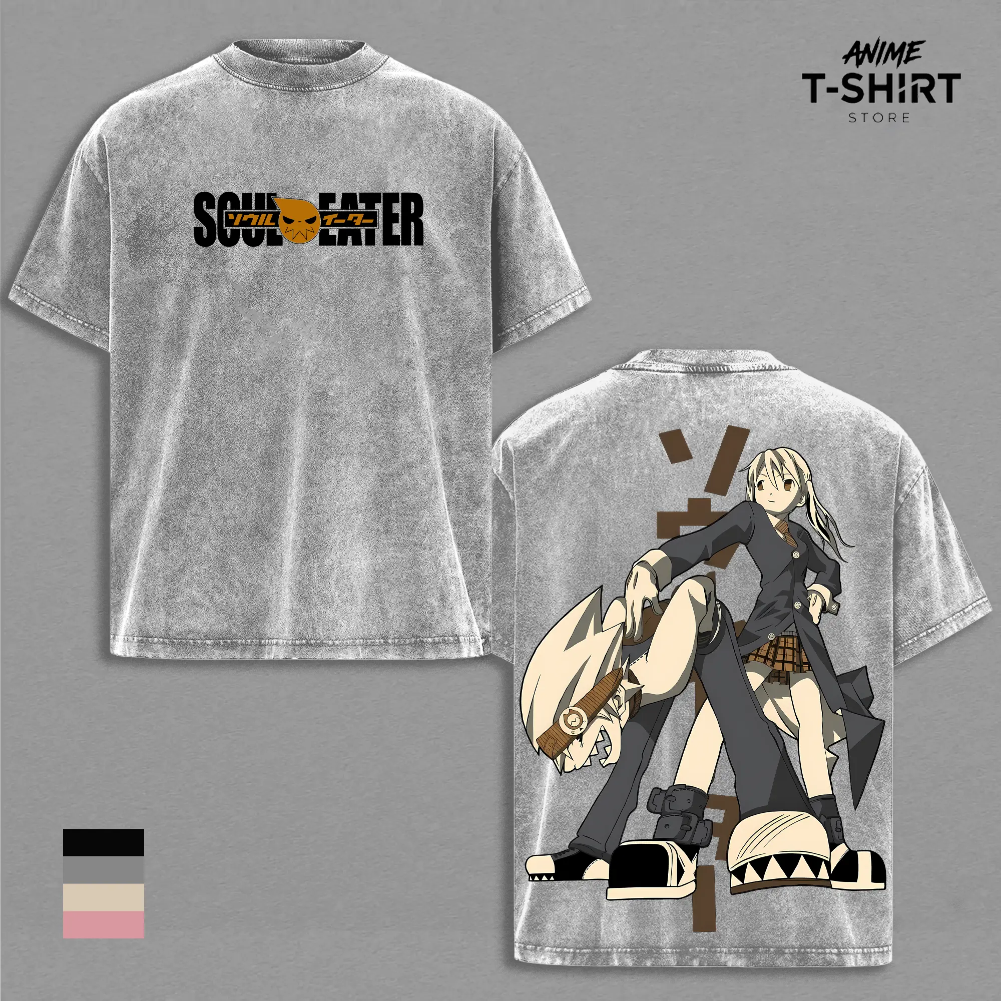 5. Maka Albarn & Soul Evans - Soul Eater Anime T-Shirt – Vintage Washed Oversized Graphic Hoodie, Heavy Cotton Manga Streetwear Unisex, Gift for Anime Fans