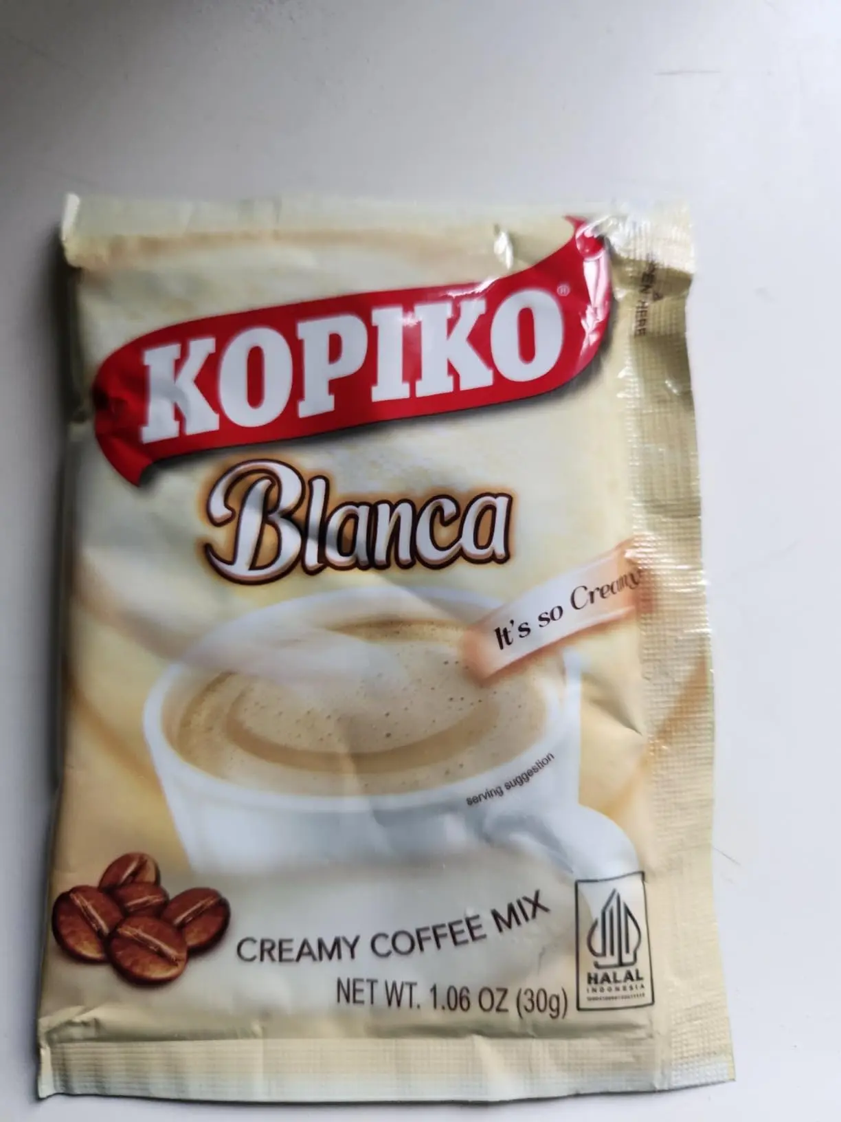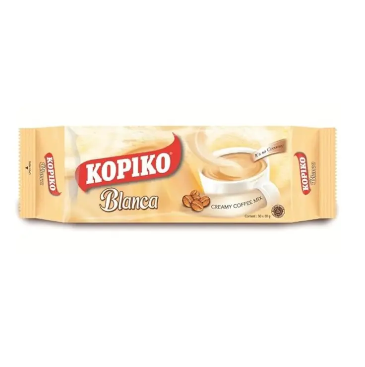 ·Pour 1 sachet of Kopiko Creamy Blanca Long Pack 3 in 1 Instant Coffee Mix into a cup. 2. Add hot water. 3. Stir well and enjoy.