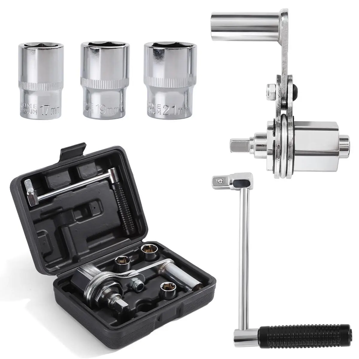 ✔️ 3 common sockets included — 17mm, 19mm, 21mm