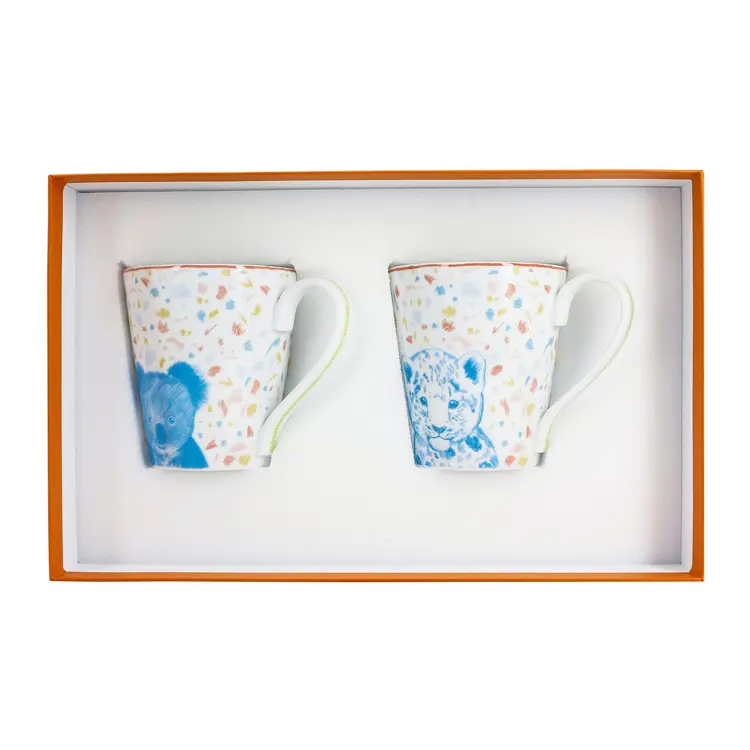HERMES Ceramic Rabbit & Panda Mug Set (250ml, 2-Piece)