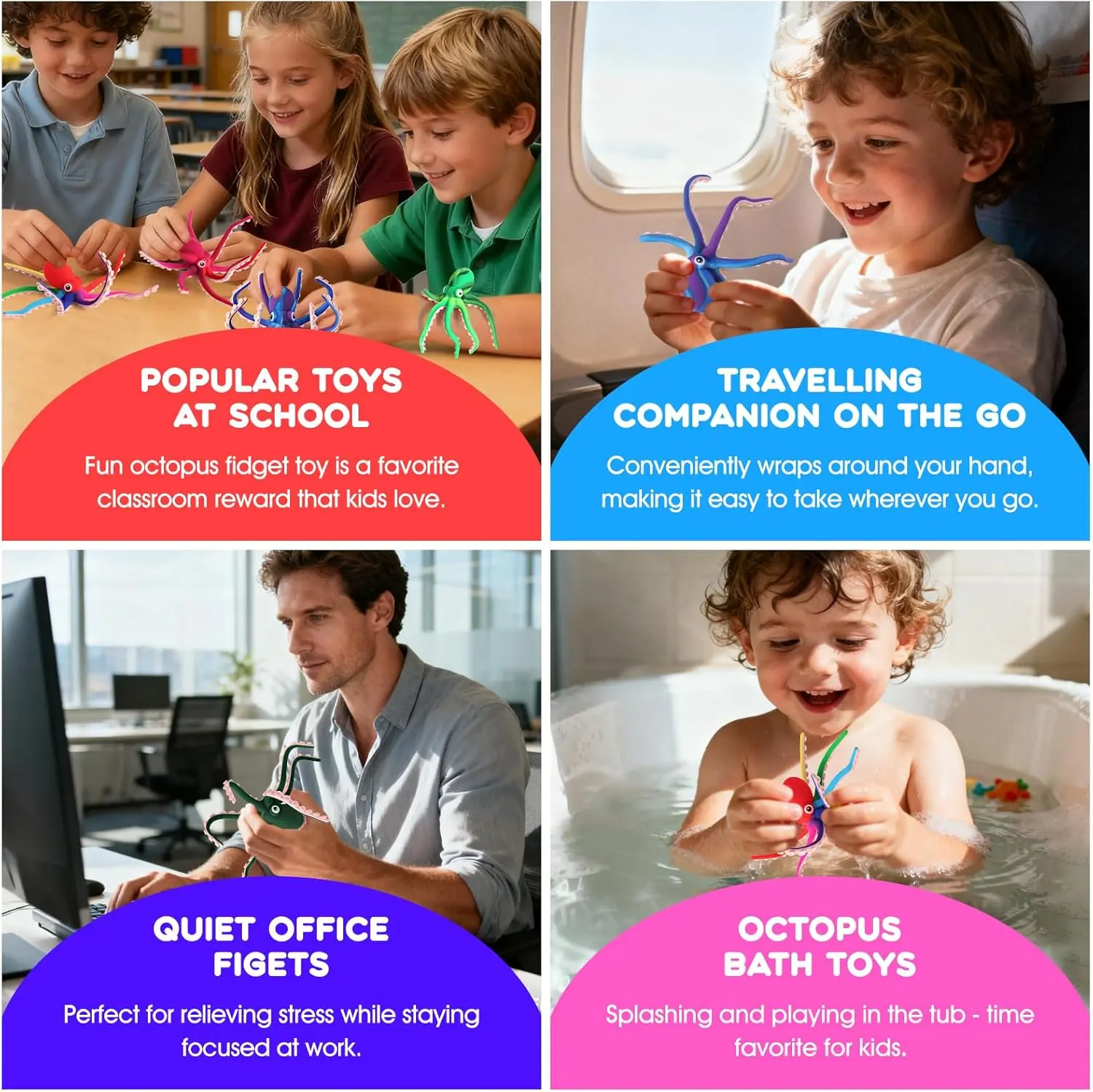 Stress Relief & Sensory Play: Rows of soft suction cups mimic the movements of a real octopus; they adhere to smooth surfaces like glass or desktops, offering a satisfying "popping" release when squeezed—perfect for relieving stress.