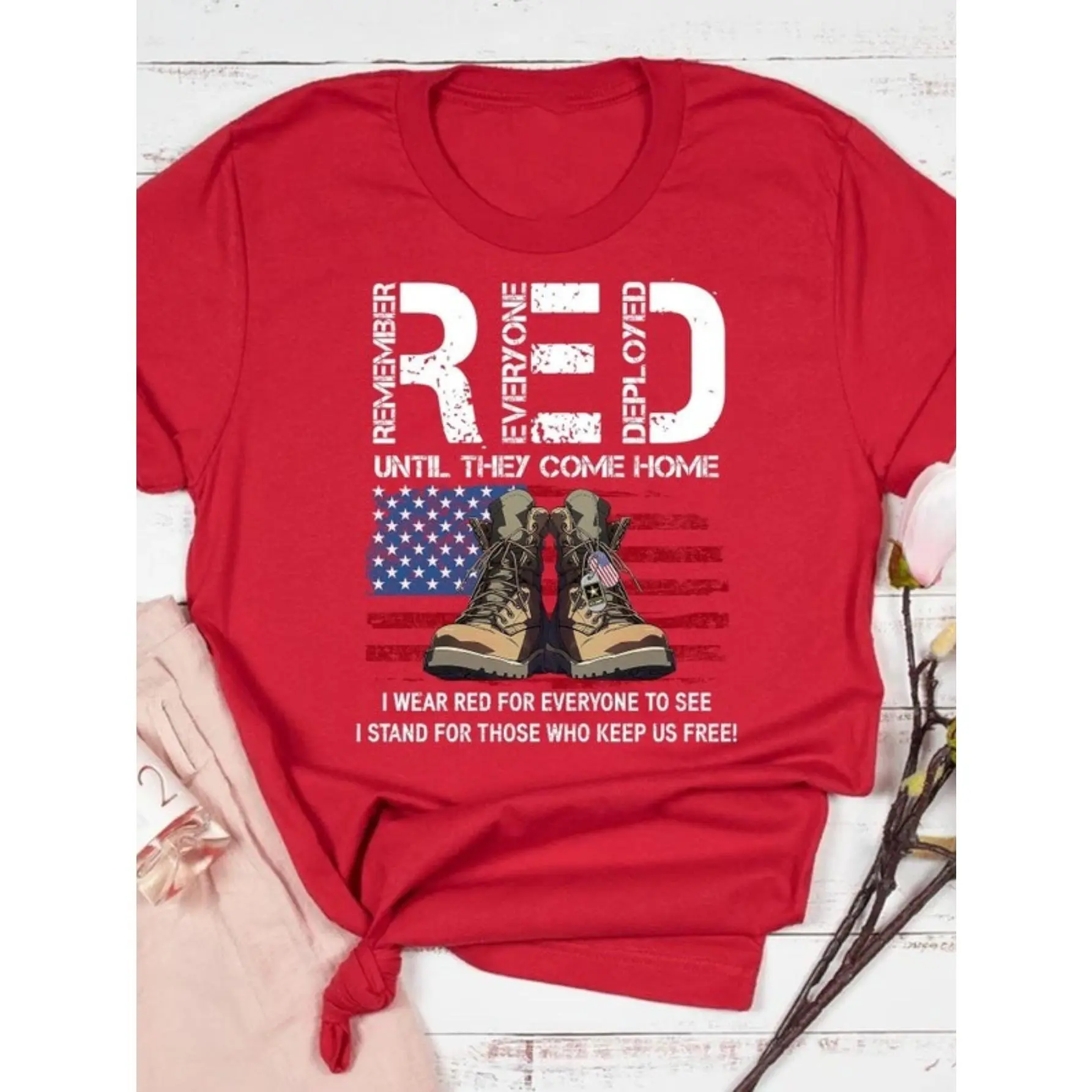 On Friday We Wear Red T-Shirt: US Veteran Remember Everyone Deployed Shirt 100% Regular Fit American Flag Us Veteran Tee, American Flag Military Sweatshirt, on Friday We Wear Red Shirt on Friday We Wear Red Shirt