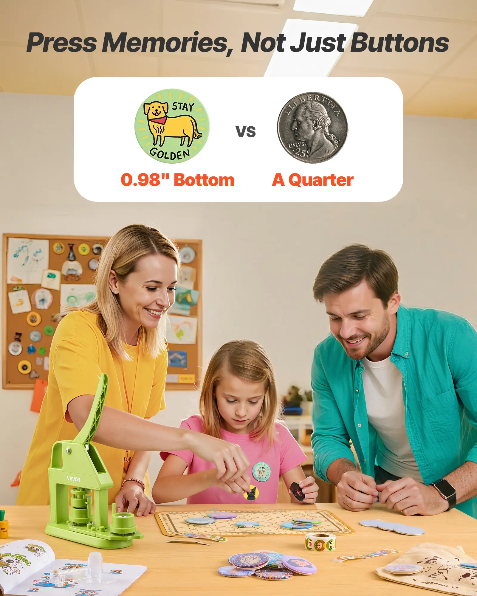 ·Make Personalized Presents: Design custom badges for any occasion. Our button making machine also works with mirrors, keychains, bottle openers, and magnets—turn your creativity into one-of-a-kind, heartfelt keepsakes