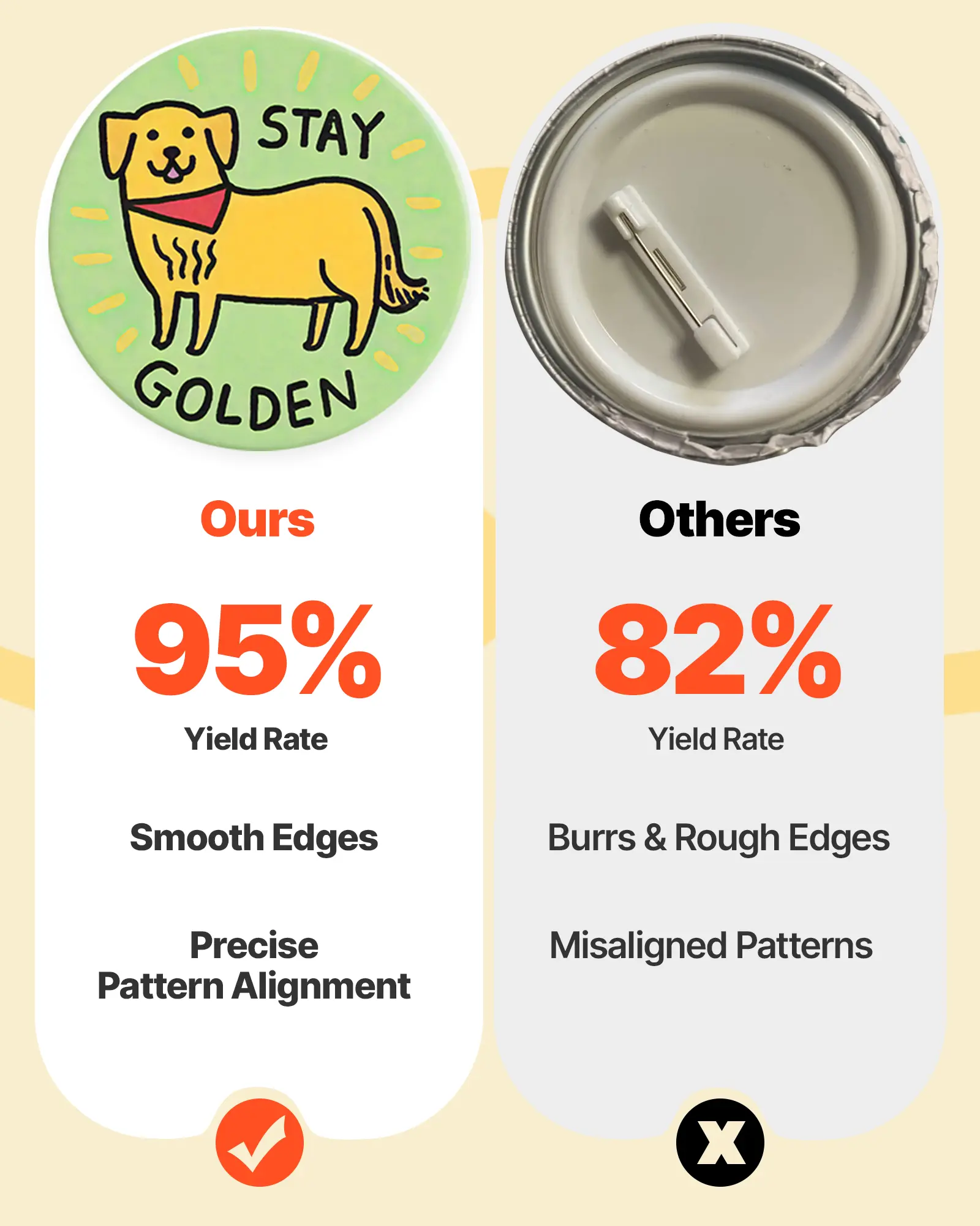 You can align the center of your design with the mold using the guide marks on the button pin maker, helping avoid issues like off-center images or slanted text and improving the overall success rate.