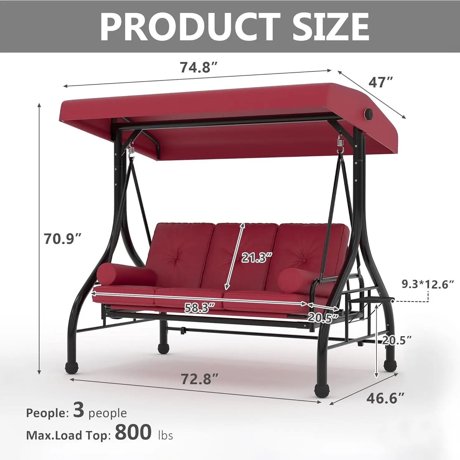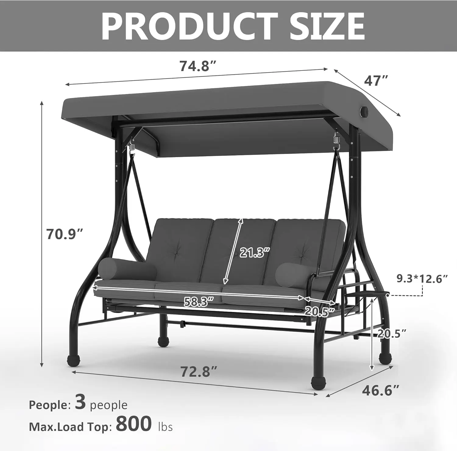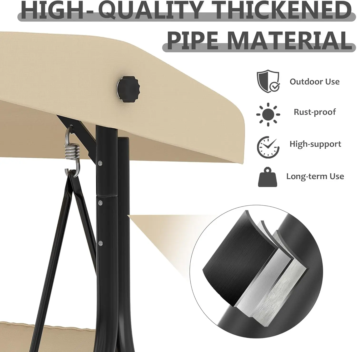 ·ADJUSTABLE CANOPY FOR ALL-DAY SHADE:Designed with a smooth knob adjustment system, this patio swing with canopy allows you to tilt the roof to different angles for better shade throughout the day. The UV-resistant fabric helps reduce sun exposure while relaxing on your outdoor swing chair.