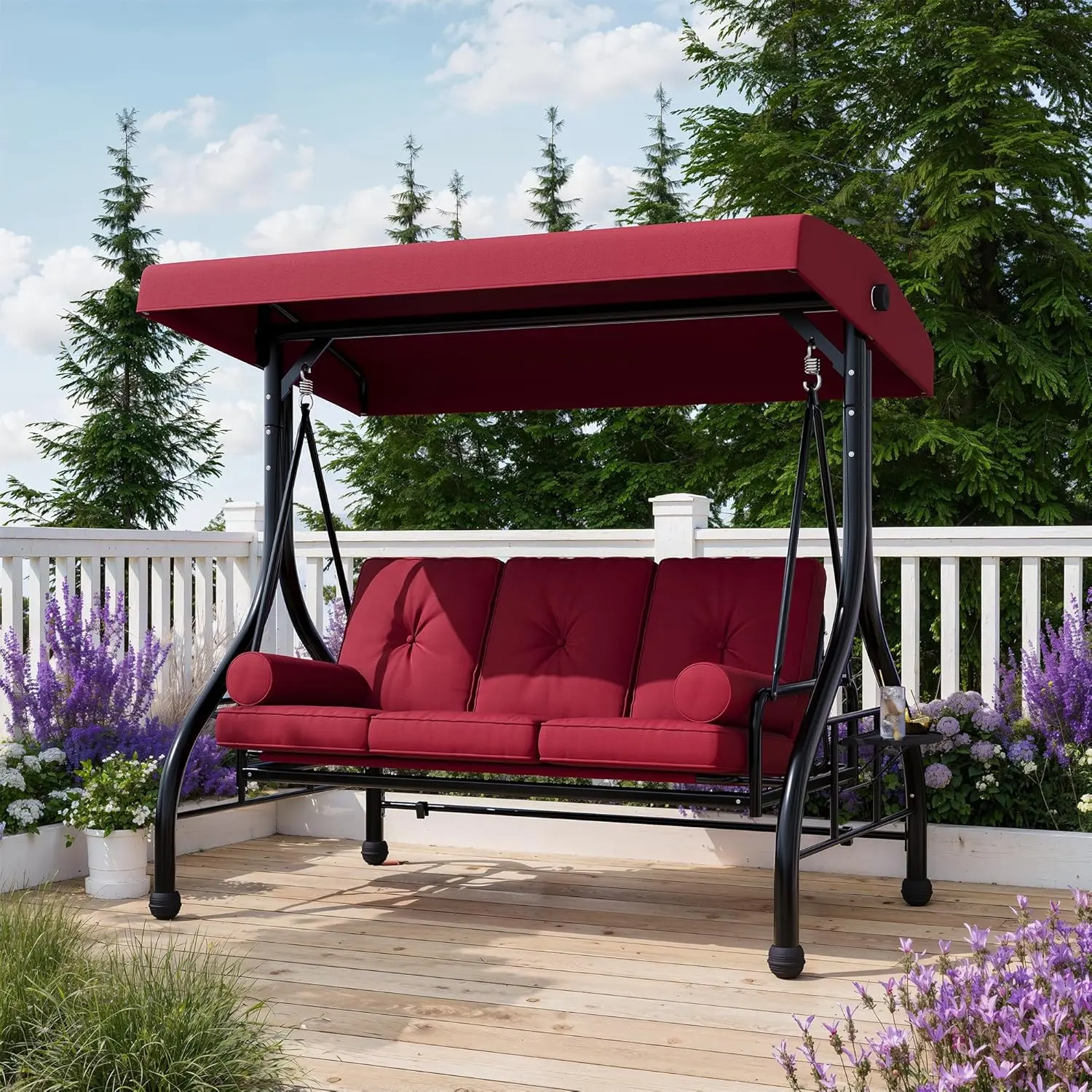 ·PLUSH CUSHIONS WITH PILLOWS FOR ADDED COMFORT:Soft seat cushions combined with supportive lumbar pillows create a comfortable seating experience. The water-resistant fabric and replaceable foot pads help enhance durability, making this patio swing suitable for patios, balconies, poolside areas, and gardens.