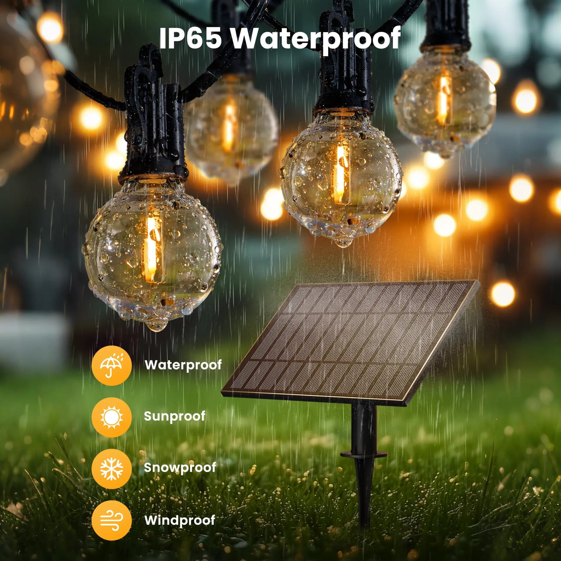 Rain? Wind? Heat? Snow? No problem. IP65 waterproof certification, these solar string lights for outside withstand extreme weather conditions, including high temperatures, heavy rains, and strong winds. These waterproof outdoor patio lights can handle it all. The shatterproof bulbs will defeat any poor weather in your daily life, no any boring things happening.