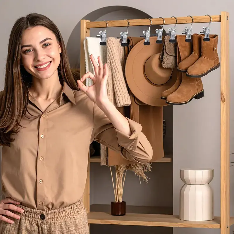 【Space Saving】- Compared with standard clothes hangers, our metal boot clips for is designed to maximize space by boots vertically, making the pant hangers a nice solution for small apartments, college dormitory or off-season boot storage; these boot hangers for closet tall boots, pulling boots and waders provide a clutter-free while Optimizing storage capacity; Ideal for busy parents, outdoor enthusiasts, college students and any closet organizers and storage.