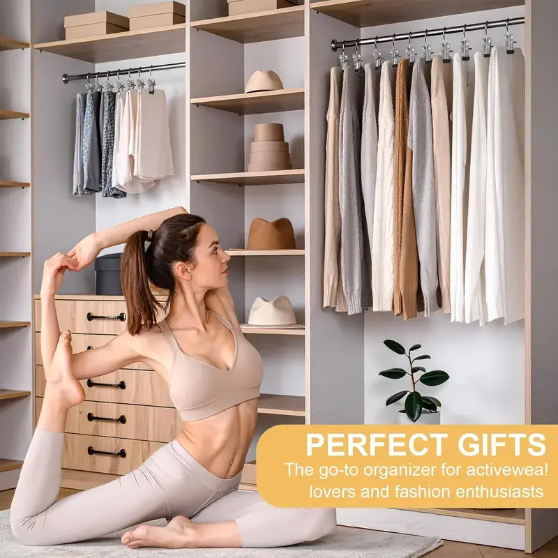 【Quality Material】- The legging hangers for closet organizer are crafted from robust stainless steel with black electrophoretic -resistant finish, resistant to bending, deformation, and breaking, ensuring long-lasting performance even under heavy use; pants hanger's robust construction ensures clamping force, keeping your clothing securely in place and your closet organized, laundry clips work well in both dry and wet conditions.