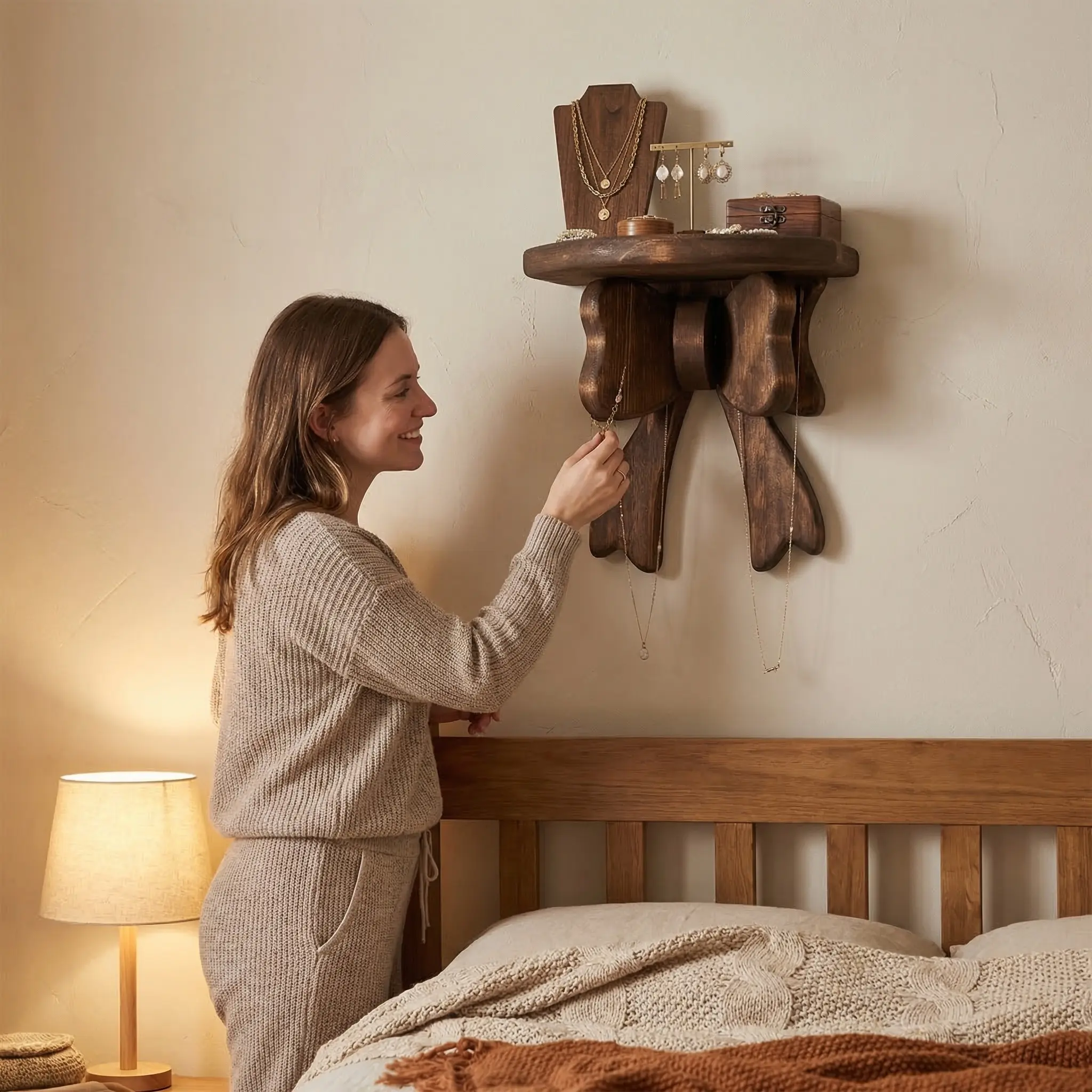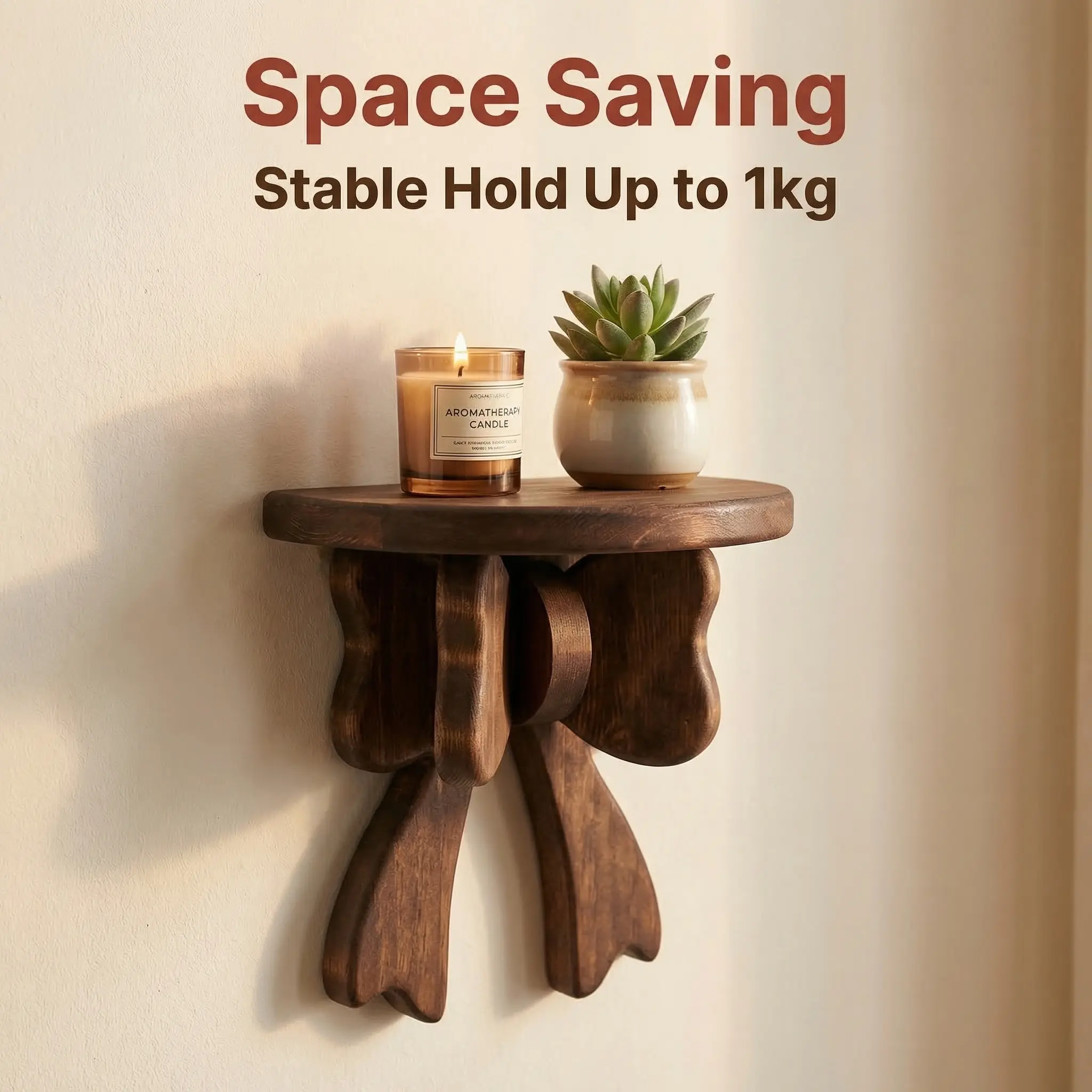 Elevate your home decor with our Vintage Wood Bow Wall Shelf—the perfect blend of rustic charm and space-saving functionality! This cute wooden bow display stand is a must-have for small apartments, busy living rooms, cozy bedrooms, and even sleek bathrooms. Crafted from high-quality wood with a vintage finish, it serves as a stunning floating shelf and a versatile decor piece for Halloween, Easter, and Thanksgiving—ideal for displaying your favorite seasonal accents, small plants, trinkets, or everyday essentials. Easy to install and space-efficient, it’s the ultimate upgrade to transform your wall into a stylish focal point!