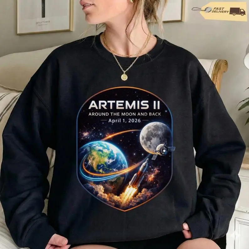 Artemis 2 Journey Around the Moon and Back 2026 T-Shirt, Space Enthusiast Gift, NASA Mission Graphic Tee
