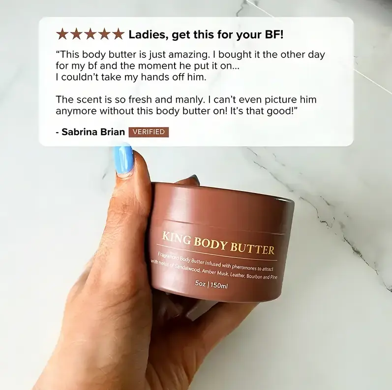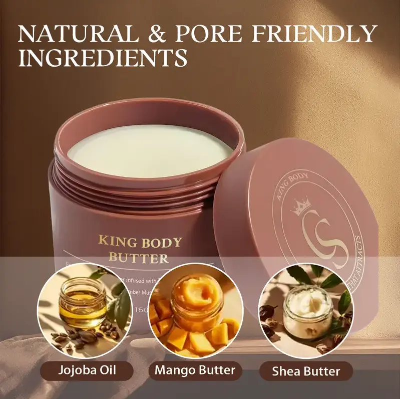Colognes Crowned Skin King Body Butter Key Features:·Moisturizes gently: This body butter provides gentle moisturization, keeping your skin soft and supple. ·Softens rough areas: It effectively softens rough skin, leaving it smooth and. ️·Boosts vitality: The body butter boosts your skin's vitality, making it look healthier and more radiant. Scent and Suitability:·Warm scent: Enjoy a warm, pleasant scent that enhances your overall experience. ·Suits all types: This body butter is suitable for all skin types, ensuring everyone can benefit from its nourishing properties. Luxurious Nourishment:·Delivers luxurious nourishment: Experience luxurious nourishment that hydrates and cares for your skin deeply. ·Perfect for daily use: Ideal for daily use, this body butter is a must-have for maintaining healthy, soft skin.