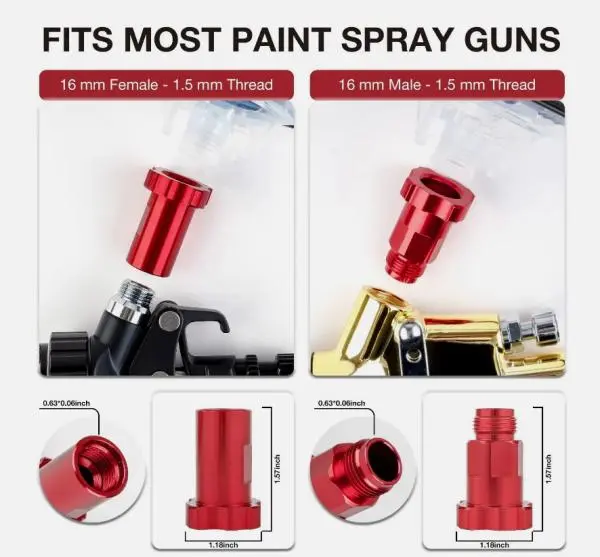 ·Universal Red Adapters: Includes 2 sturdy red adapters compatible with most standard spray guns (HVLP/LVLP), ensuring a tight, leak-free seal.