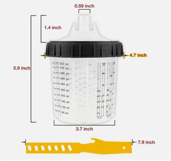 ·Precision Mixing Marks: Inner cups feature clear, easy-to-read graduation marks (ratios) for accurate mixing of paint, primer, and clear coat.