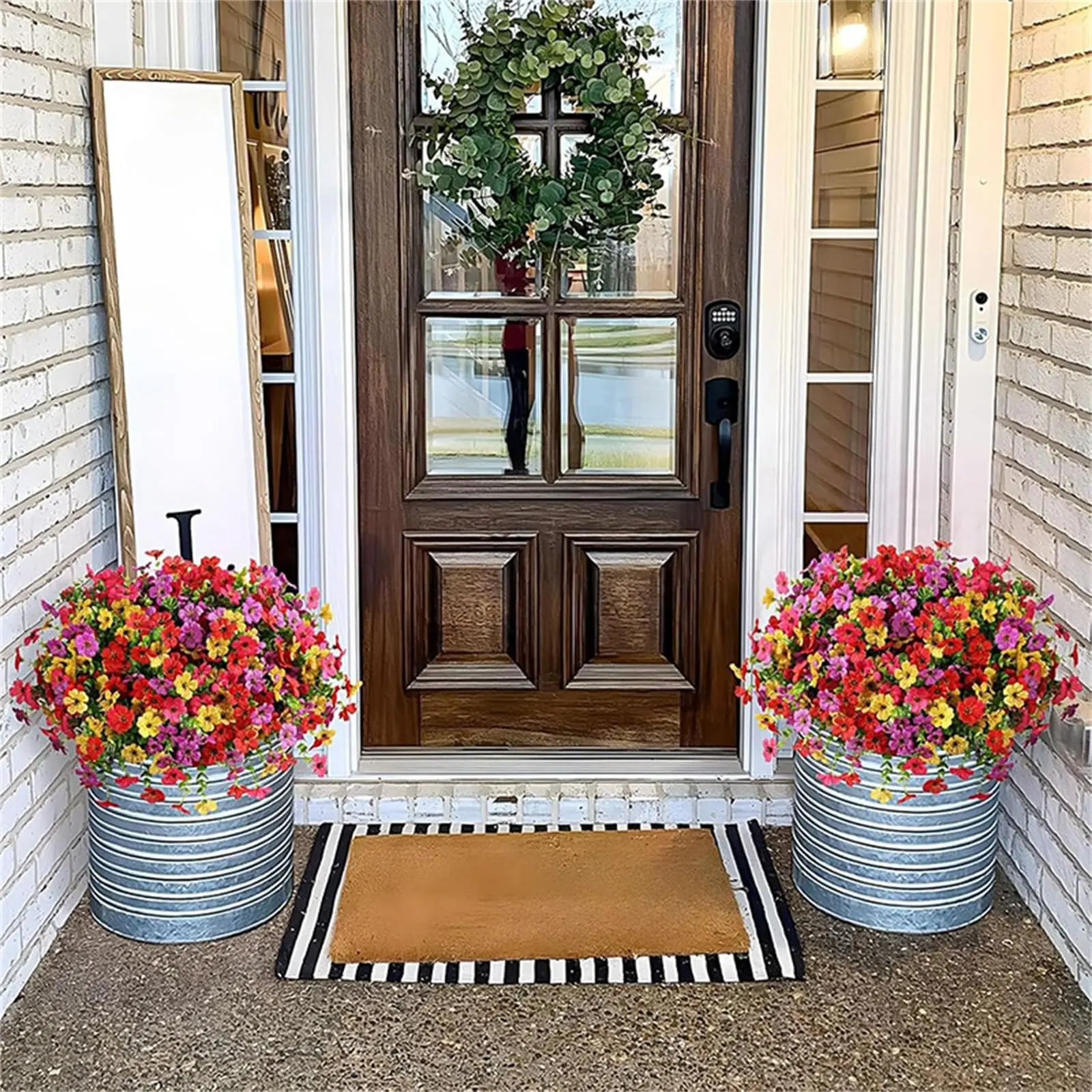 Designed for both indoor and outdoor use, these plastic faux blooms bring effortless greenery and charm to any area. Featuring vivid daisies paired with fresh eucalyptus leaves, they deliver a natural, realistic appearance that blends beautifully into greenery boxes, boxwood arrangements, porches, patios and more.