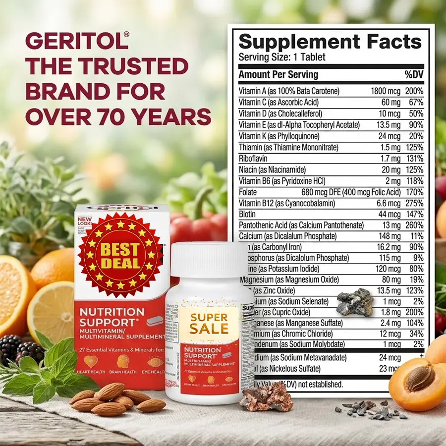 | Ingredients | Dibasic Calcium Phosphate Anhydrous,Magnesium Oxide,Microcrystalline Cellulose,Niacinamide Ascorbate (Niacin and Vitamin C),dl-α-Tocopheryl Acetate (Vitamin E),Potassium Chloride,Beta Carotene (Vitamin A),Stearic Acid,Polyvinyl Pyrrolidone,Zinc Oxide,Carbonyl Iron,Calcium d-Pantothenate,Pyridoxine HCl (Vitamin B6),Silicon Yeast,Manganese Sulfate,Thiamine Mononitrate (Vitamin B1),Cholecalciferol (Vitamin D3),Biotin,Magnesium Stearate,Hydrated Silica,Cupric Oxide,Riboflavin (Vitamin B2),Silicon Dioxide,Cyanocobalamin (Vitamin B12),Phytonadione (Vitamin K1),Folic Acid,Potassium Iodide,Chromium Chloride,Sodium Molybdate (Molybdenum),Sodium Selenate (Selenium),Sodium Metavanadate,Nickelous Sulfate,Stannous Chloride,Hypromellose,Polyethylene Glycol 8000,Polyethylene Glycol 400,Carnauba Wax,FD&C Blue #2,FD&C Red #40,FD&C Yellow #6,Titanium Dioxide,Vitamin A,Vitamin C,Vitamin D,Vitamin E,Vitamin K,Thiamine (Vitamin B1),Niacin,Vitamin B6,Vitamin B12,Pantothenic Acid,Calcium,Iron,Phosphorus,Iodine,Magnesium,Zinc,Copper,Manganese,Chromium,Selenium,Molybdenum,Chloride,Potassium,Sodium Selenite |