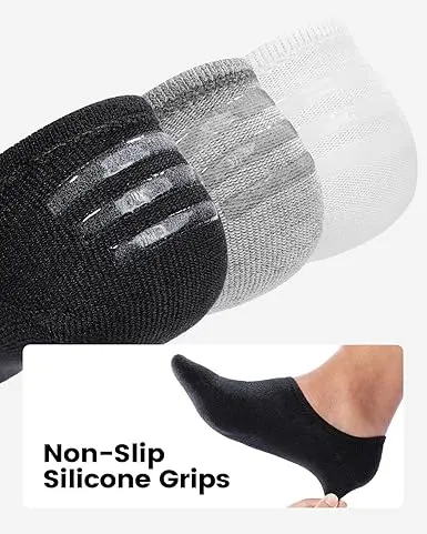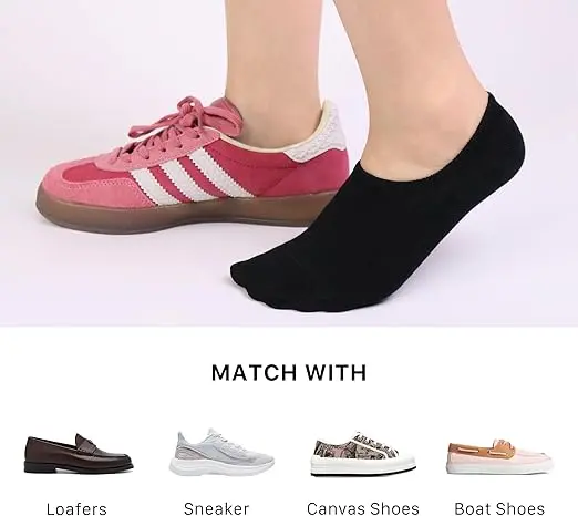 Elevate your footwear game with these no-show socks. Perfect for sneakers and loafers, they offer a seamless look. Non-slip silicone grip ensures stability. Ideal for both men and women, these socks are breathable and sweat-absorbing. They also deodorize, keeping your feet fresh. Made from breathable cotton, they are comfortable for athletic activities.