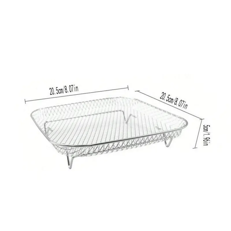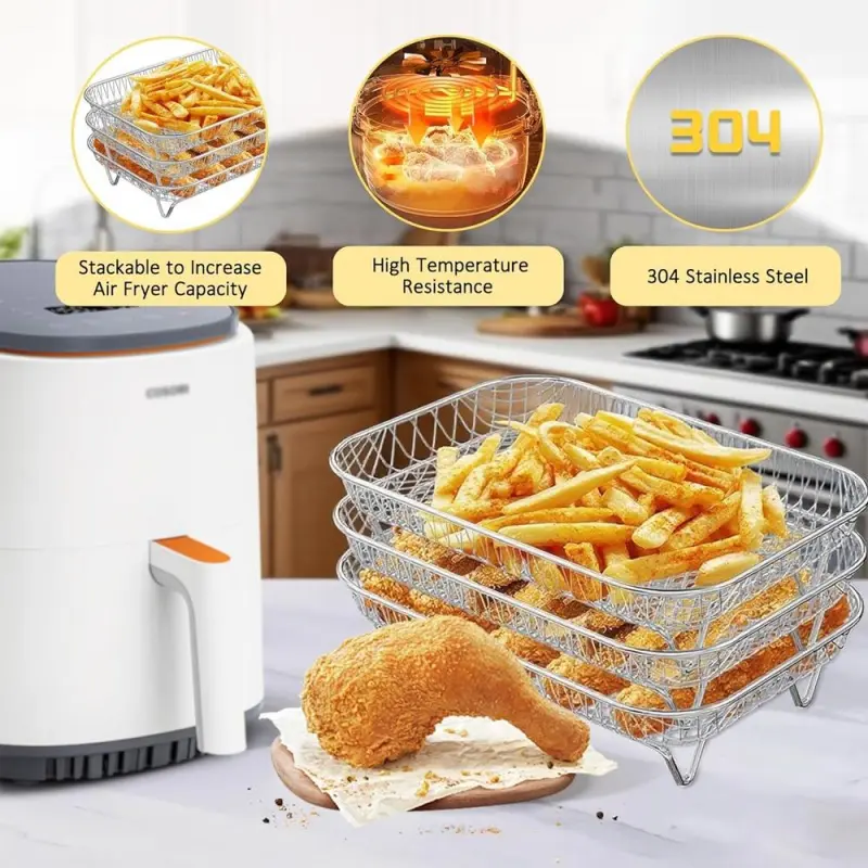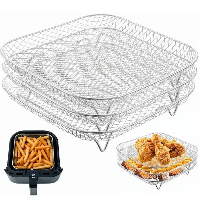 3-Piece Stainless Steel Dehydrator Rack Set, Stackable 8-Inch Square Air Fryer Rack with Silicone Feet, Oven & Deep Frying Safe