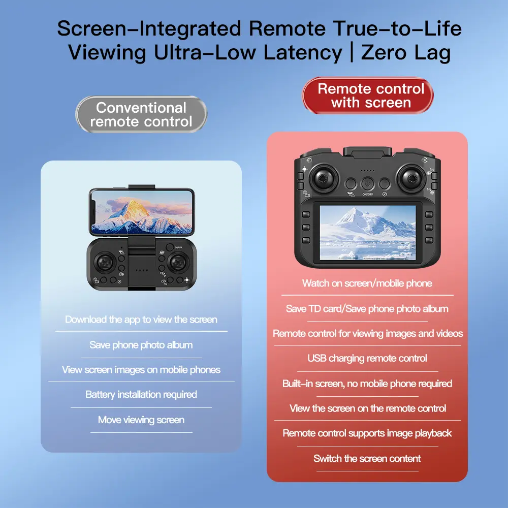 8K Dual Camera Drone for Beginners, 2000m (6562ft) Long Range, Large Remote Screen & Body LCD Display, Brushless Motor Quadcopter with Optical Flow Stability, 2 Batteries