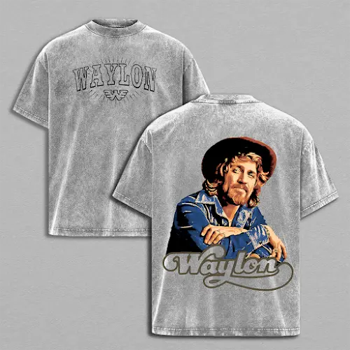 5. Retro Waylon Jennings Graphic Tee, Vintage Country Music Shirt, WAYLON JENNINGS 80s Outlaw Rock T-Shirt, Classic American Country Streetwear, Unisex Casual Outfit