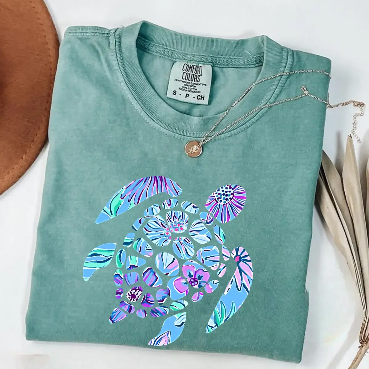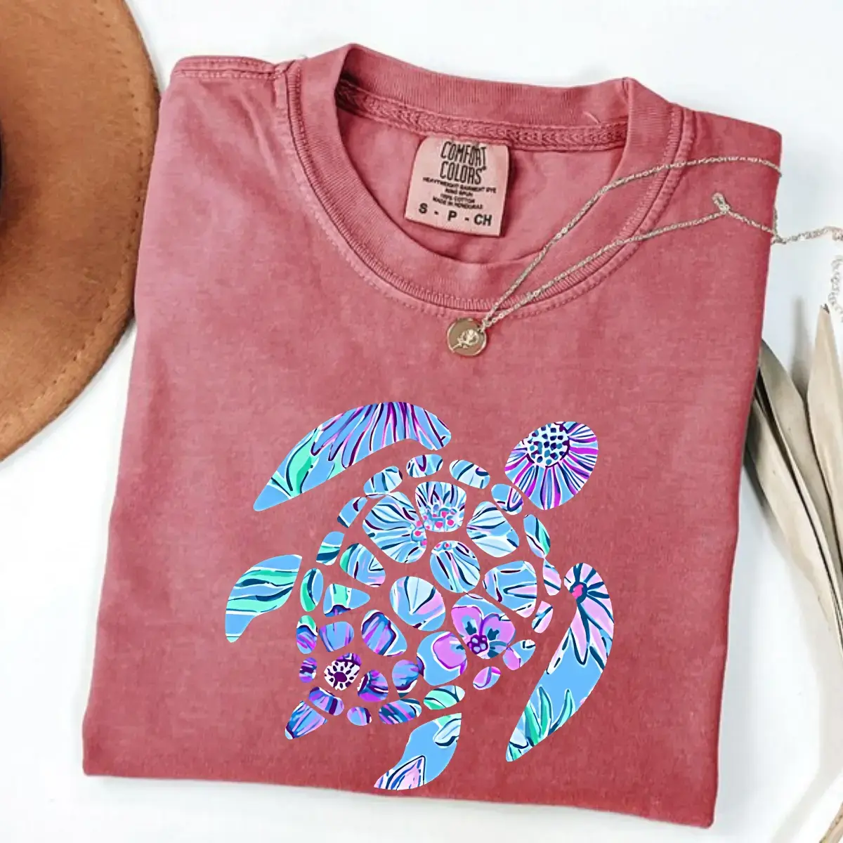 Comfort Colors Sea Turtle T-shirt, Trendy Colorful Tortoise Tee, Summer Beach T-shirt, Save Ocean Tee, Popular Marine, Gifts For Her