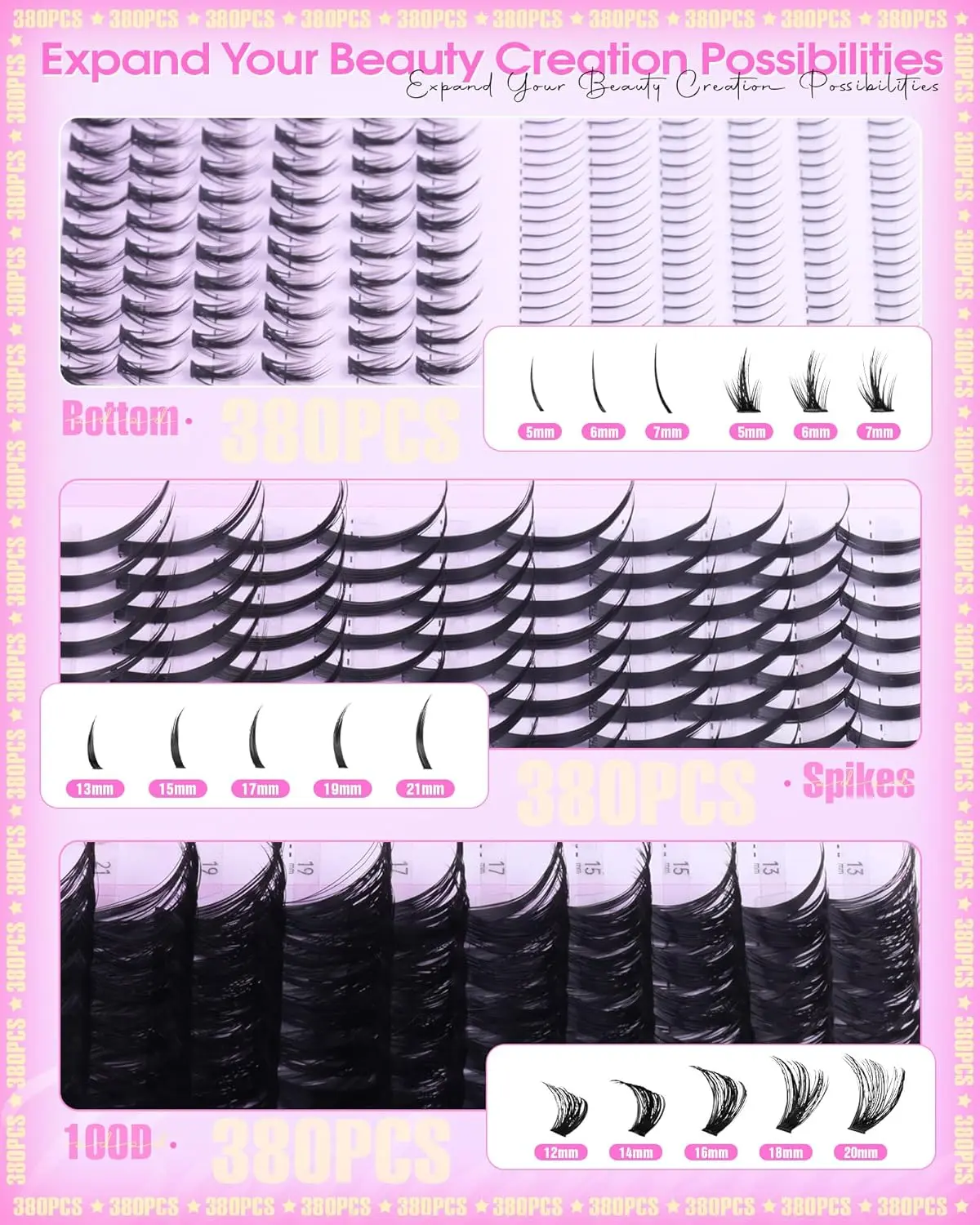 ·DIY Spikes Lash Extension: Our revolutionary Mixed-styles lash clusters put you in the designer’s seat. The amazing D curvature spikes lashes clusters gives an instant eye-opening lift, mimicking professional eyelash extensions without the need for a technician! No more settling for one-dimensional eyelash clusters!