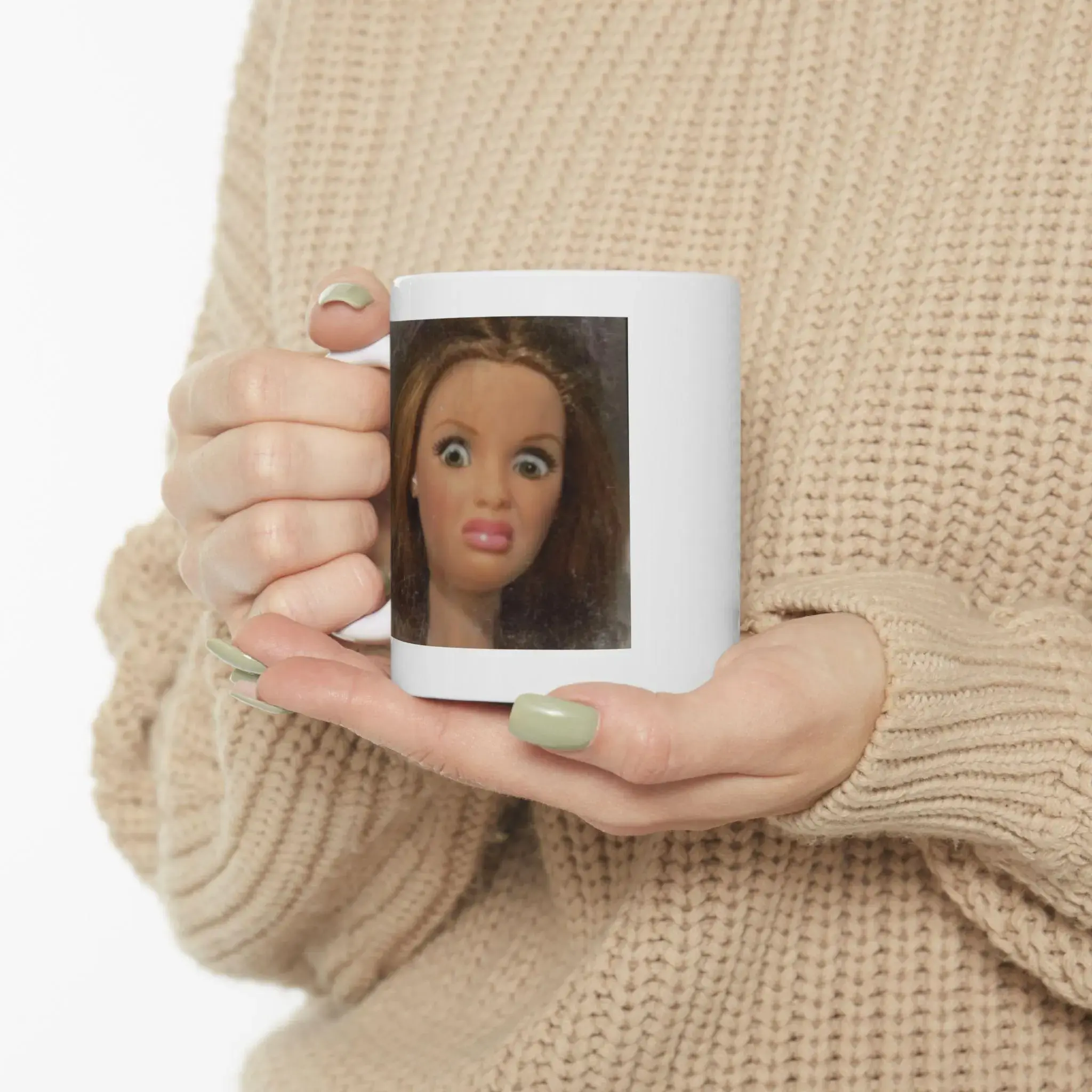[SALE UP TO 50%] Funny Doll Face Mug, Disgusted Barbie Meme Coffee Cup, Sarcastic Reaction Gift, Weird Humor Tea Cup