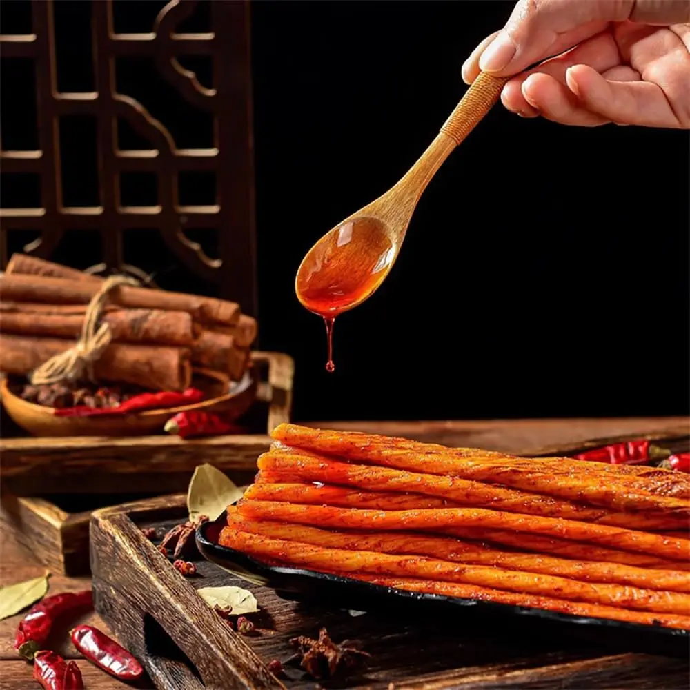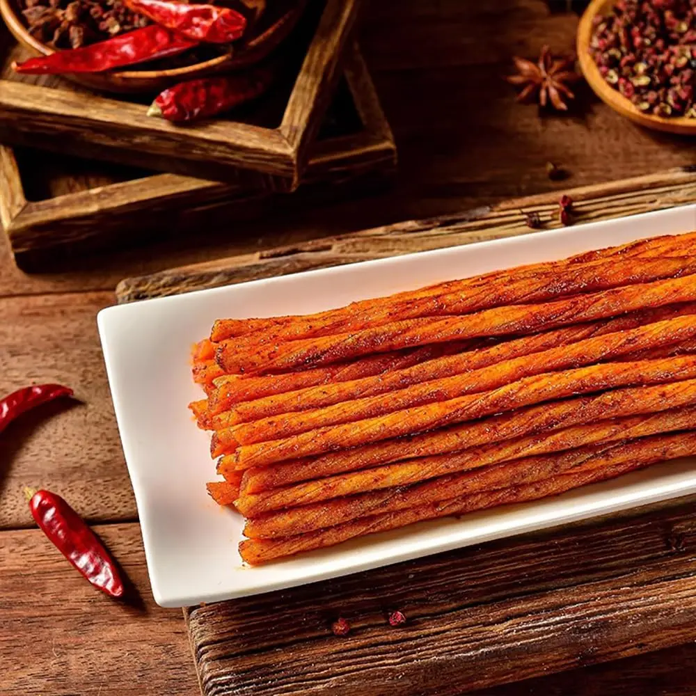 Enjoy the bold taste of traditional Chinese-style spicy snack sticks with this 20-piece pack of Latiao Spicy Strips. Each piece is individually wrapped for convenience, making it easy to carry, share, and enjoy anytime. These chewy snack sticks deliver a rich, savory flavor that develops as you chew, offering a satisfying snacking experience.