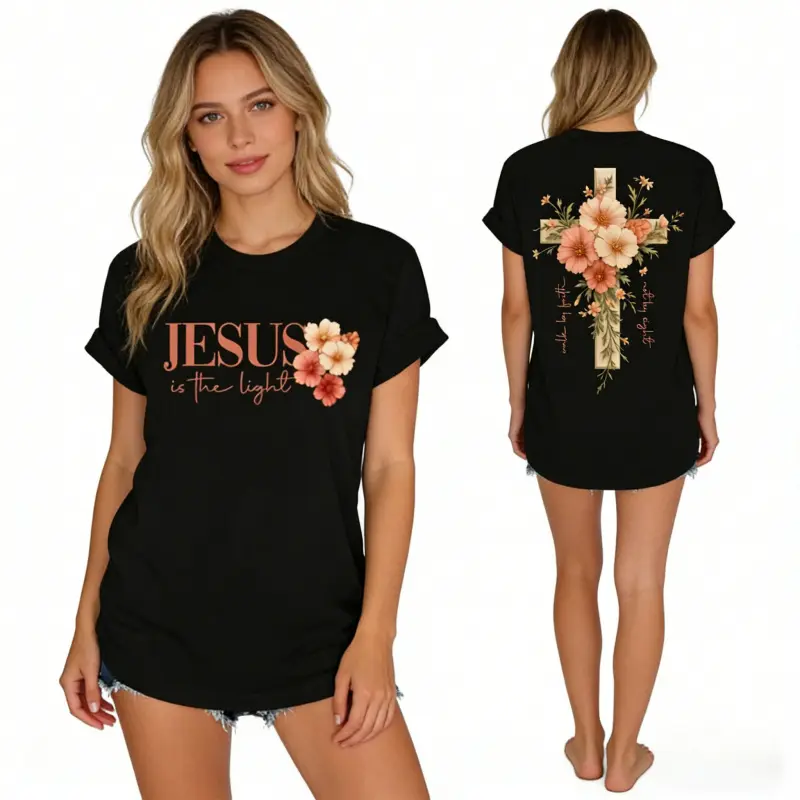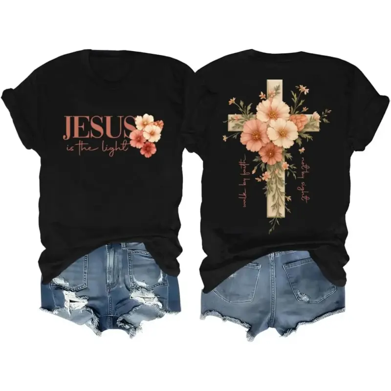 Faith Cross Christian Shirts for Women with Beautiful Floral Cross Print