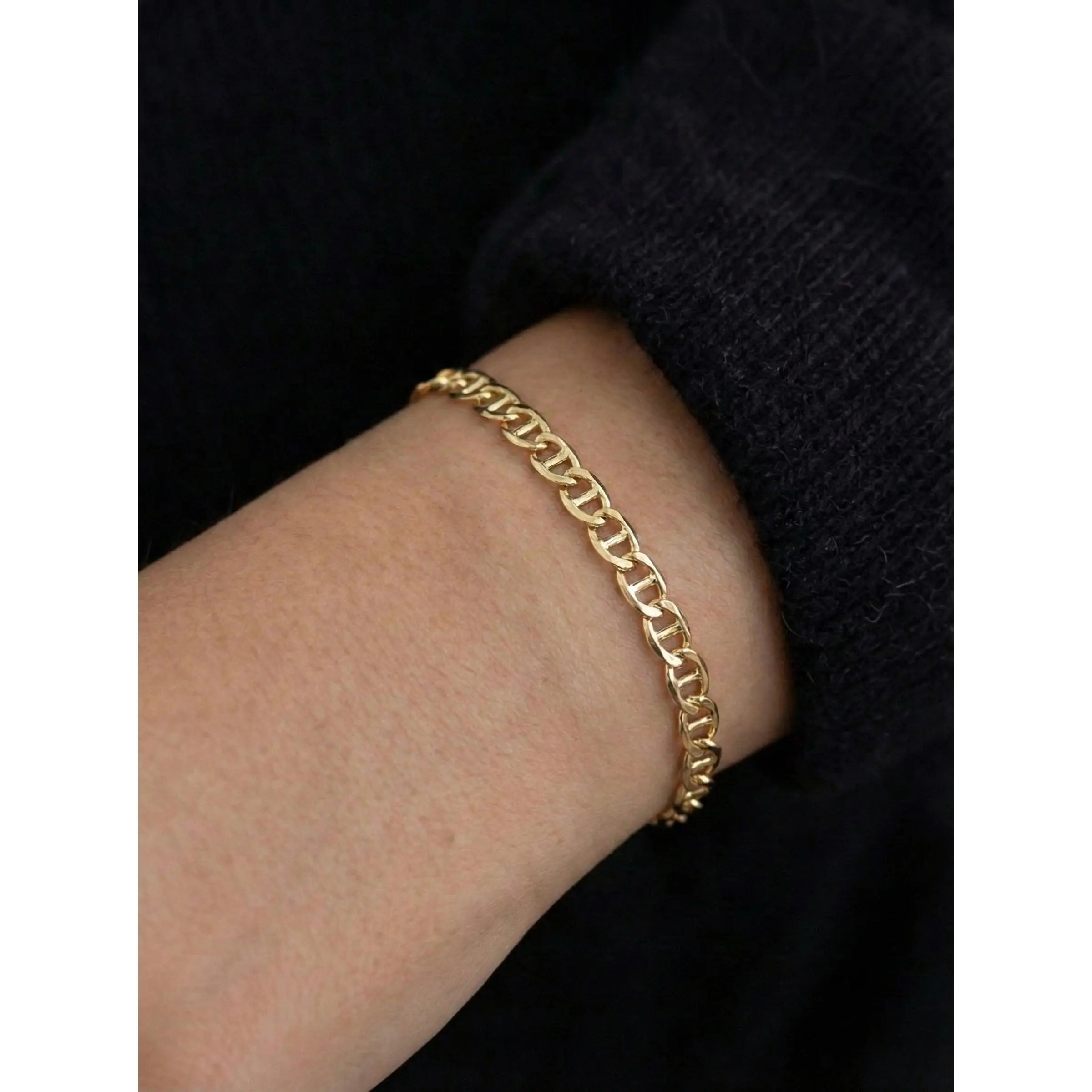 Your everyday gold essential. The Roma Link Bracelet features sleek oval links with a soft shine that layers effortlessly or stands strong on its own. Designed to feel polished without trying, this piece adds instant confidence to any look, from casual mornings to dressed-up nights.