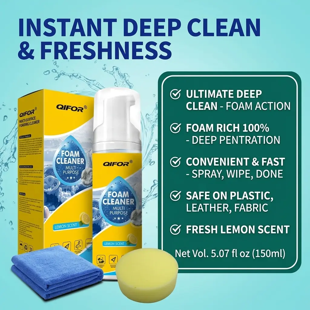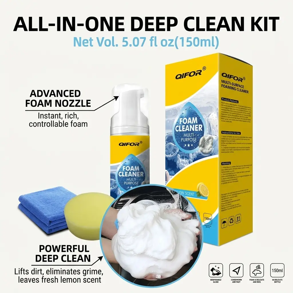 QIFOR Pro is your go-to foam cleaner for deep stain removal. Perfect for car interiors and upholstery, it eliminates the need for scrubbing. Ideal for plastic and fabric surfaces, this cleaner ensures a thorough clean. Stop the hassle and start the ease with QIFOR Pro.