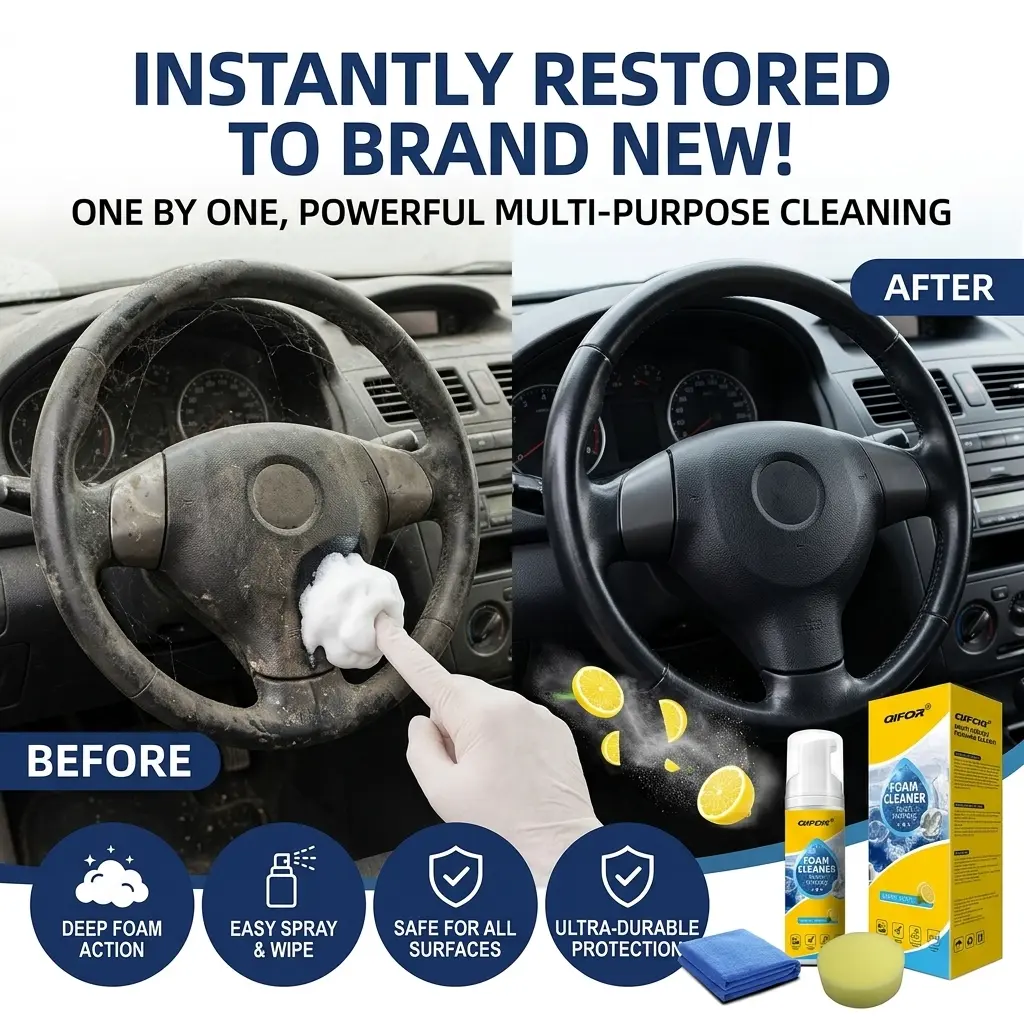 QIFOR Pro is a must-have for car enthusiasts. It simplifies the cleaning process, making it hassle-free. With this foam cleaner, you can maintain your car's interior and upholstery effortlessly. Experience the convenience of a powerful, multi-purpose cleaner.