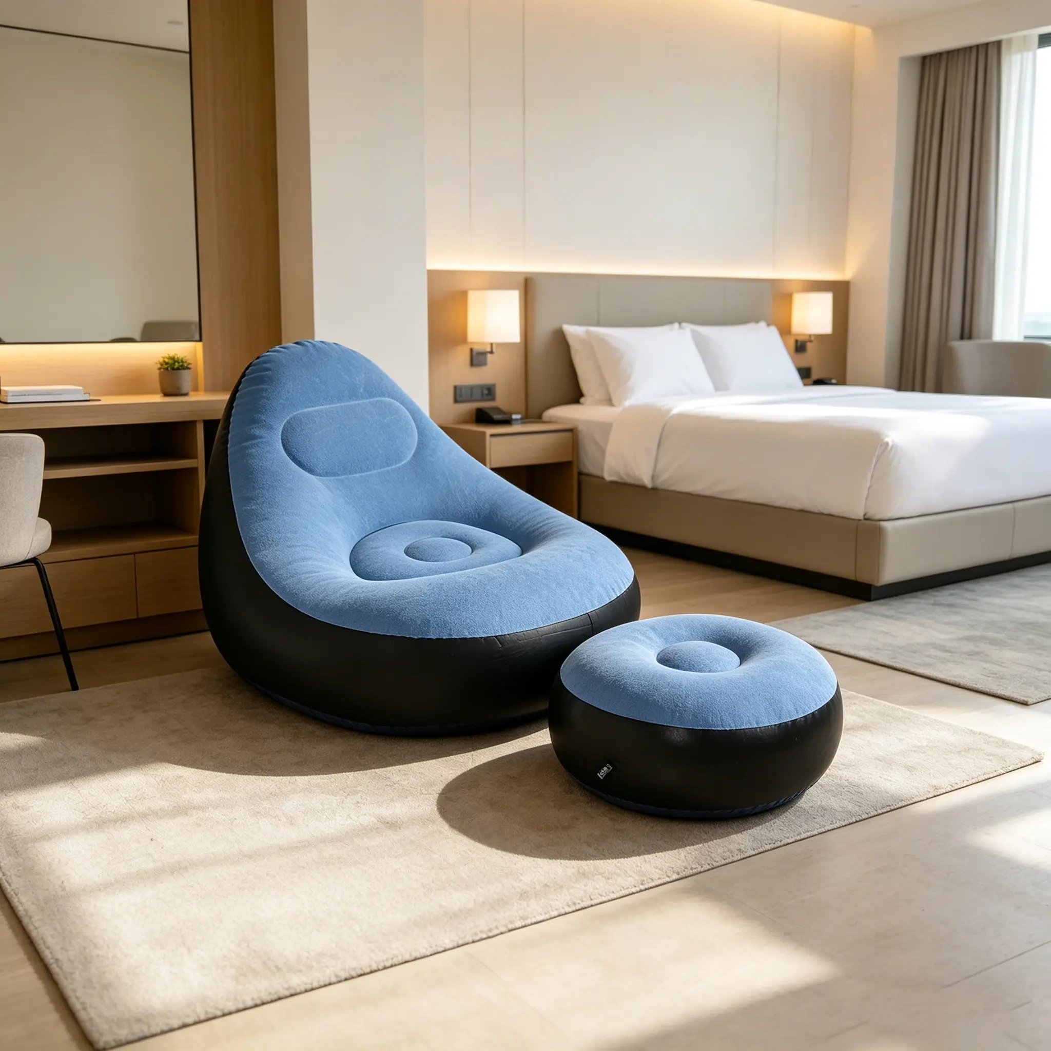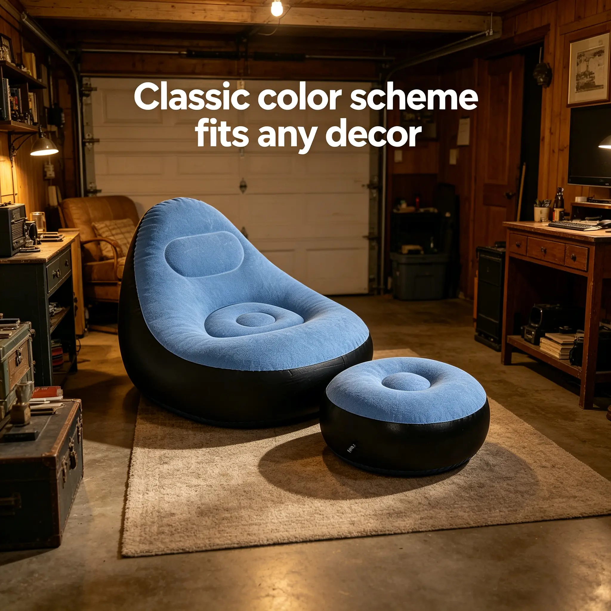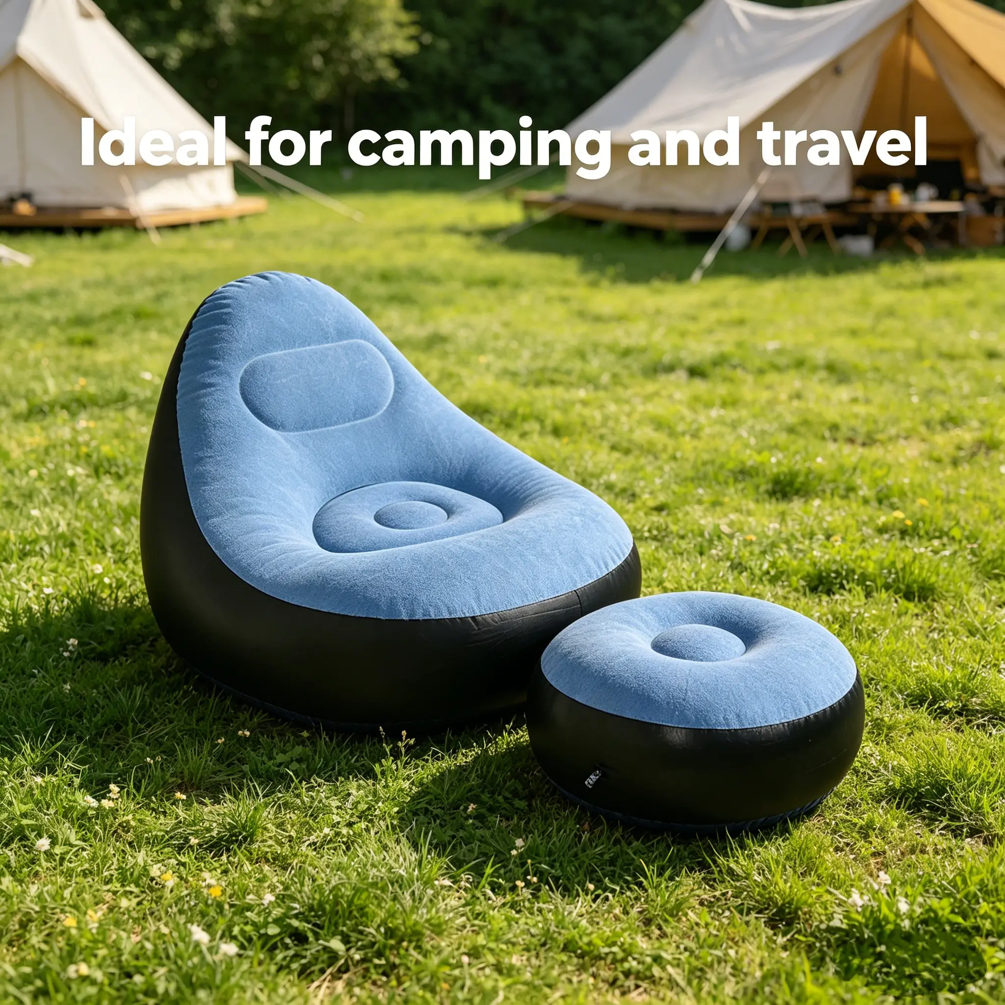 ✨ 1pc Soft Flocked Inflatable Sofa with Footrest in Blue ✨