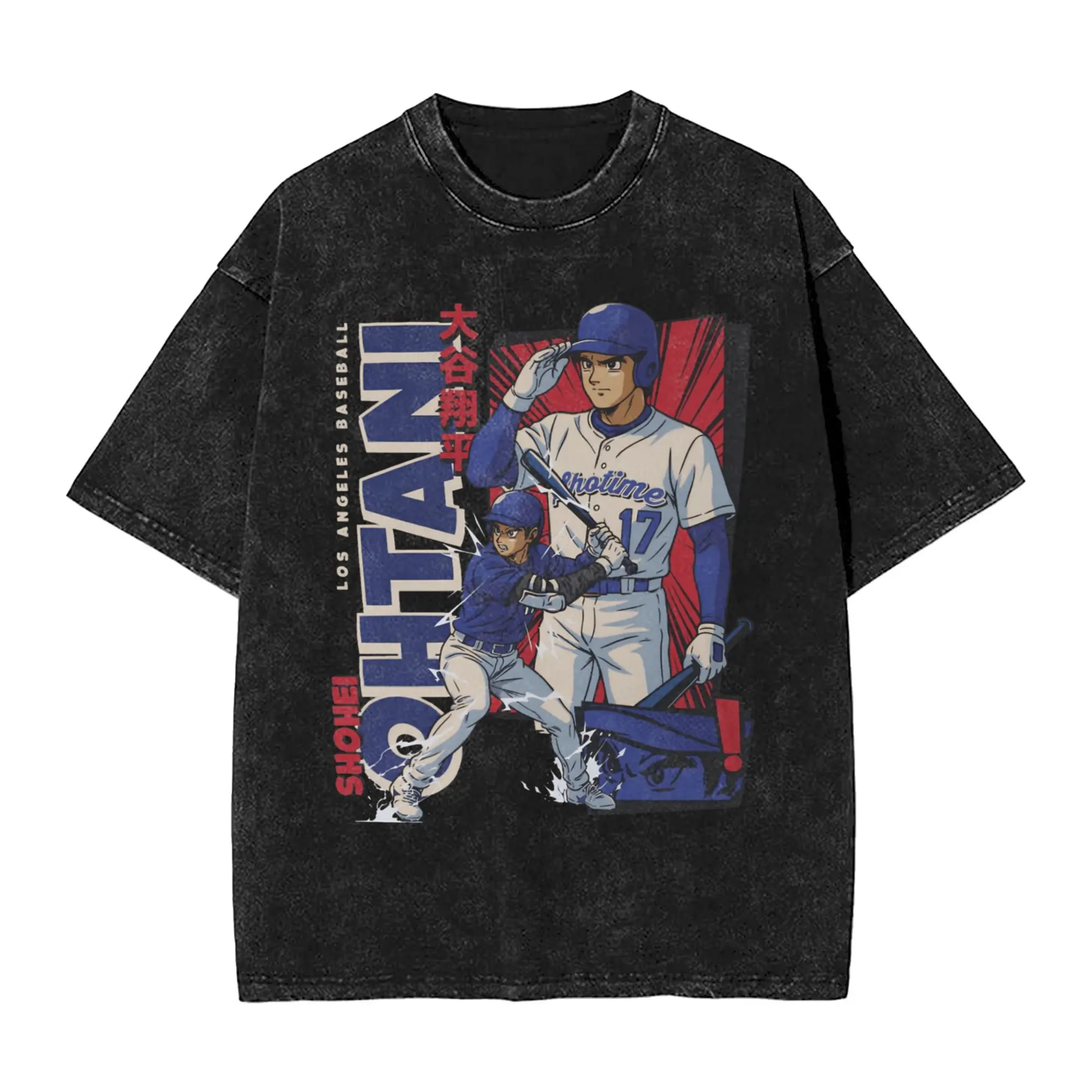 Ohtani Dodgers Anime Style Men's T Shirts Washed Funny Tee Shirt Short Sleeve O Neck T-Shirts 100% Cotton Plus Size Clothes