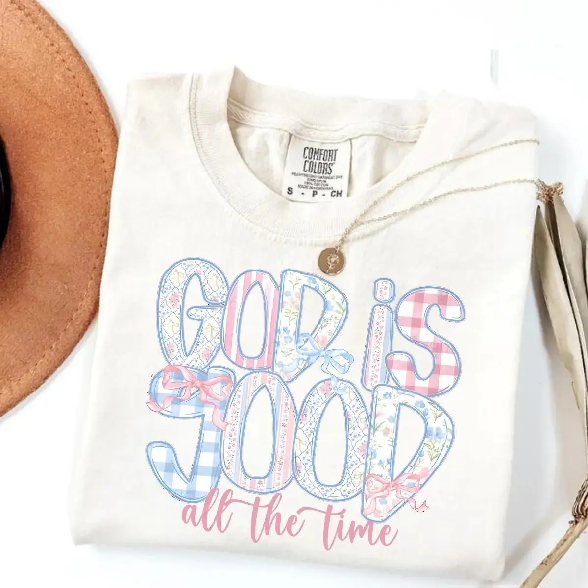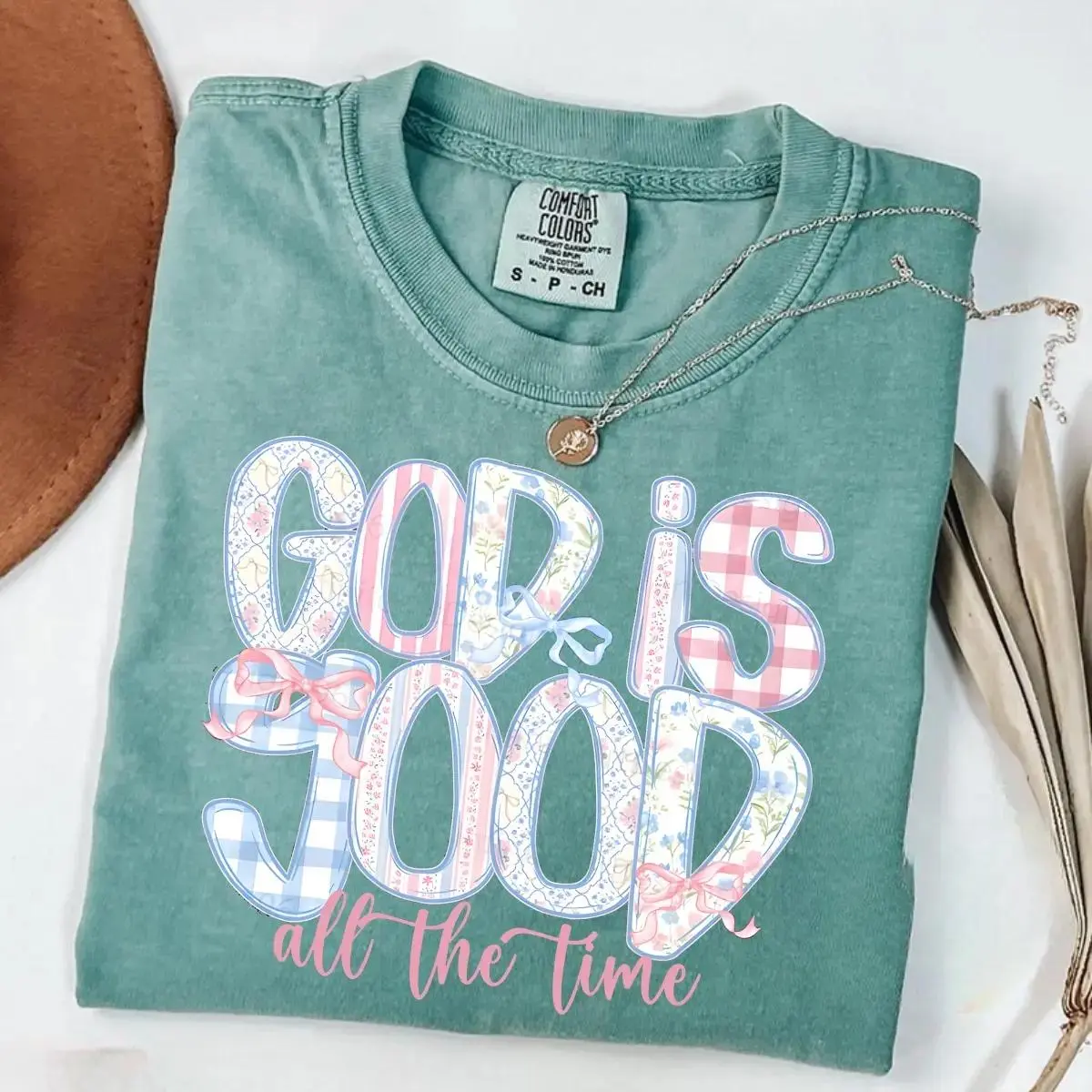 God Is Good All The Time Christian Floral T-Shirt, Preppy Faith Graphic Tee, Jesus Religious Shirt, Inspirational Quote Tee, Unisex Gift (100% Cotton)