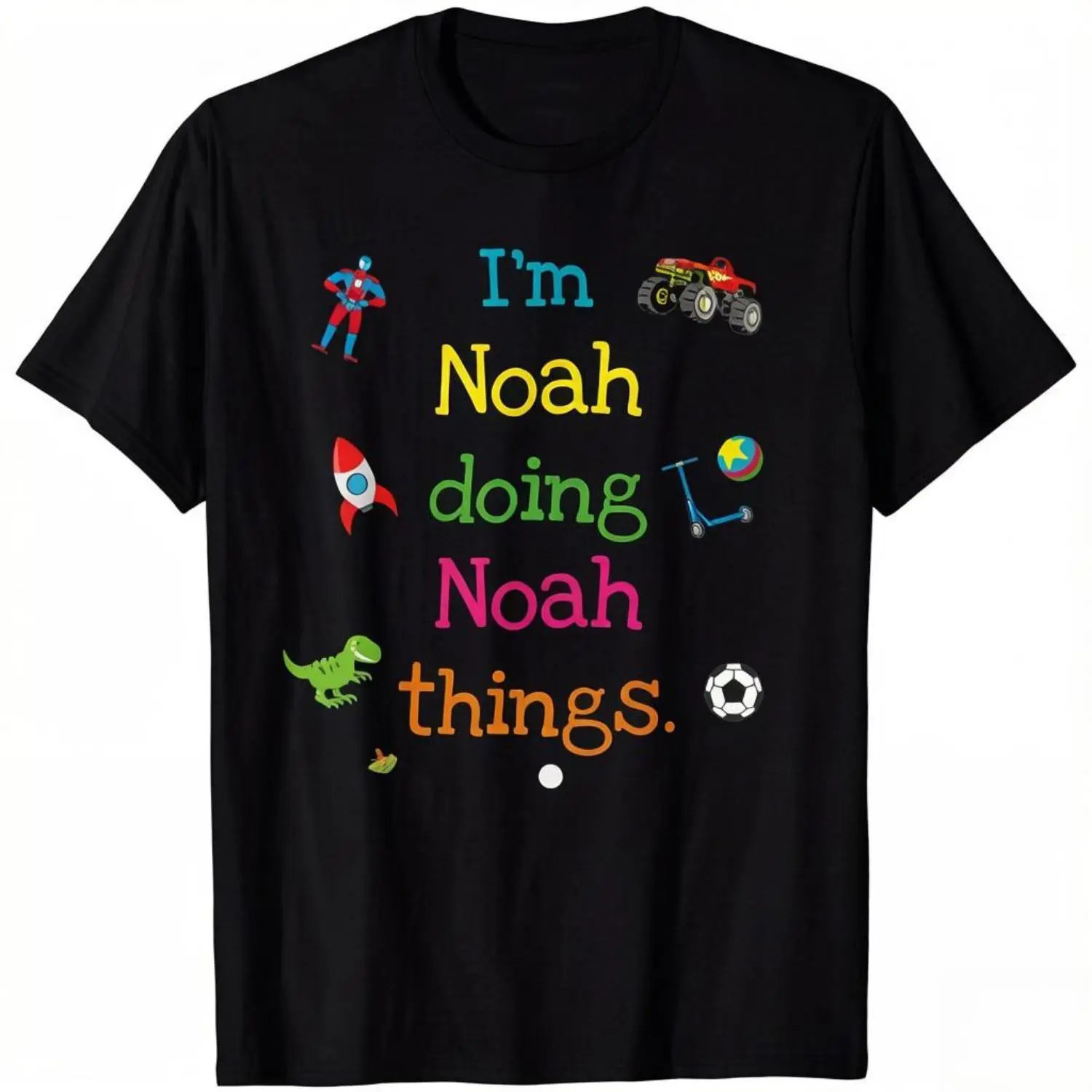 Casual Unisex Sunday and Noah Pattern Loose Fit Short Sleeve T-Shirt Comfortable Daily StreetwearCasual Unisex Sunday and Noah Pattern Loose Fit Short Sleeve T-Shirt Comfortable Daily Streetwear