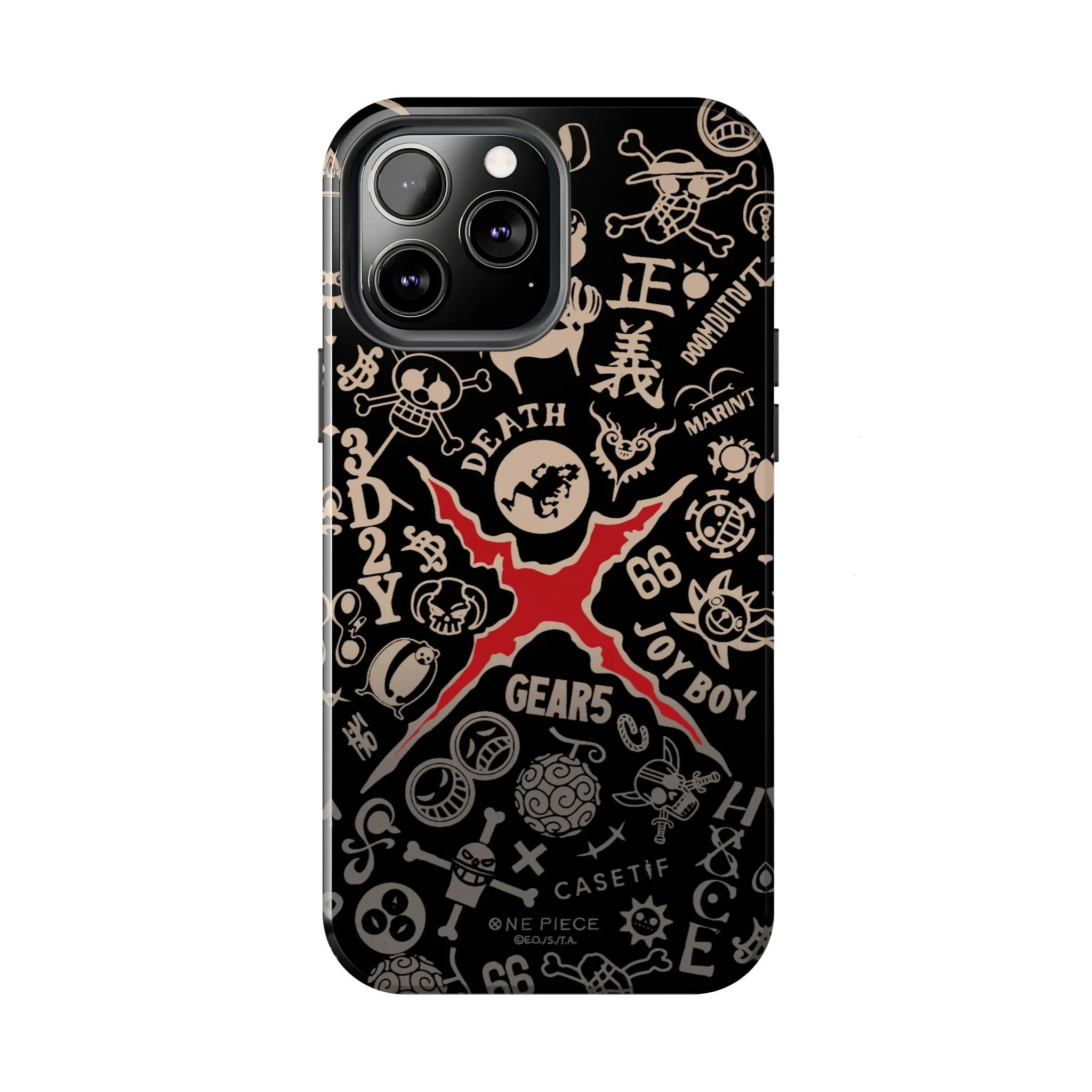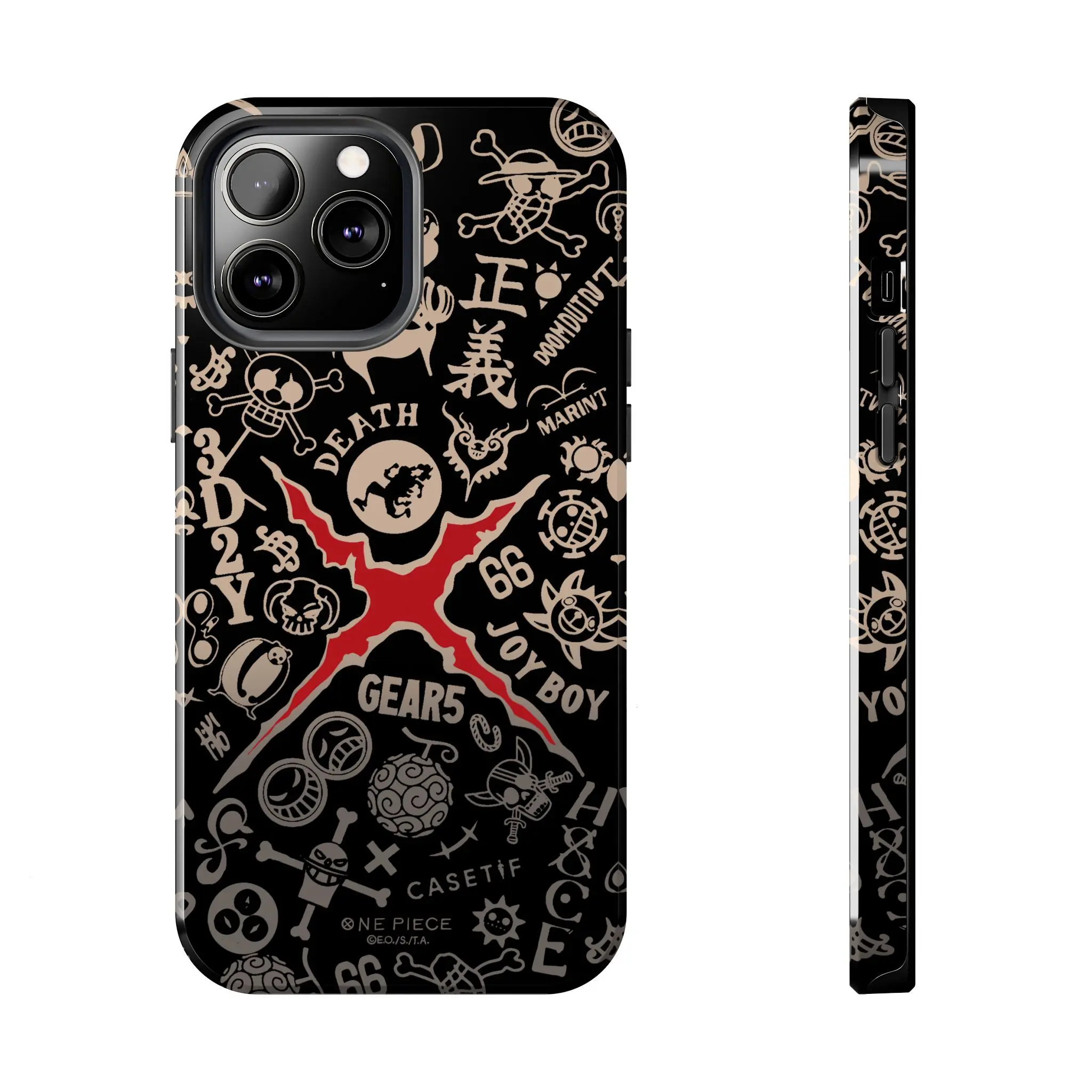 Celebrate the awakening of the sun god Nika with this intricate One Piece "Gear 5" collage case. This design is a treasure trove for fans, featuring a high-contrast doodle aesthetic filled with iconic symbols: the Gear 5 silhouette, the Joy Boy title, Gomu Gomu no Mi, and various Straw Hat crew emblems. It’s a stylish, modern tribute to Luffy’s ultimate transformation, perfect for anyone who wants to carry the spirit of freedom and adventure every day.