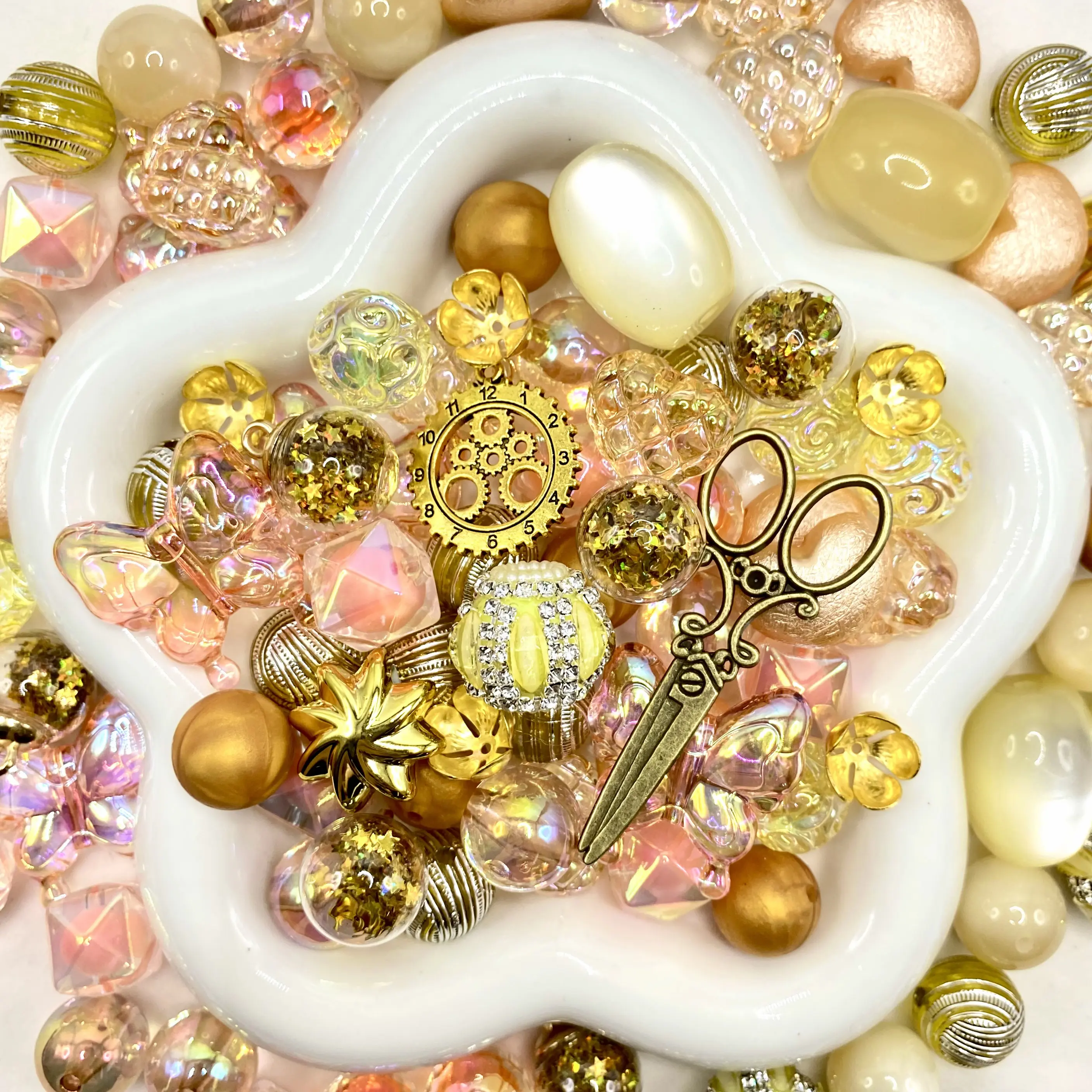 【Buy One Get One Equal Volume For Free】Golden Snips - Beads Mix for Keychain and DIY Crafts – 16/20mm Silicone, Resin & Acrylic Beads