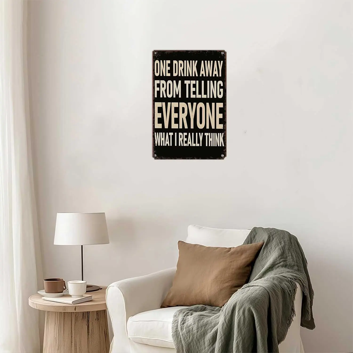 One Drink Away From Telling Everyone What I Really Think' Bar Humor Decor 8x12 Aluminum Metal Sign