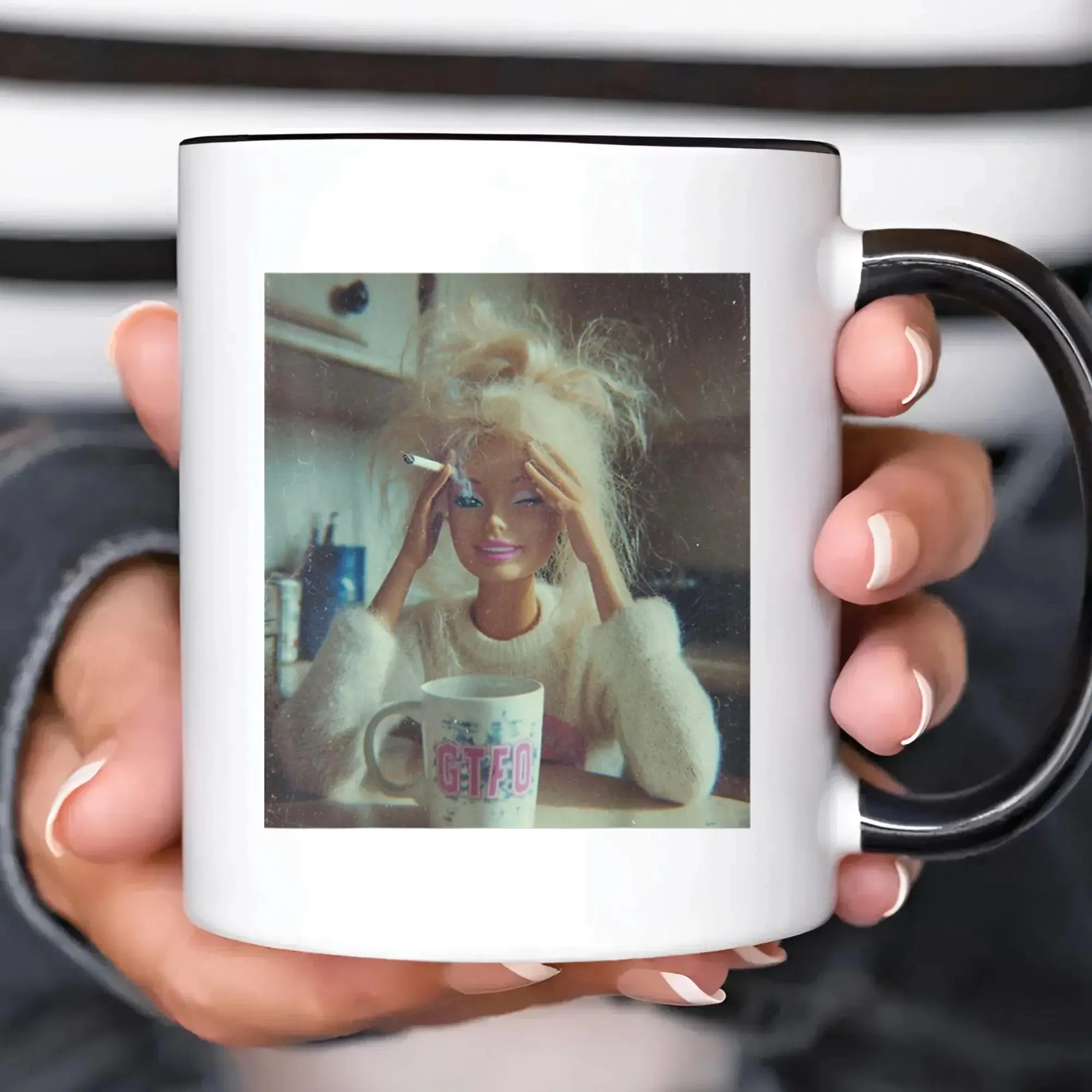 [SALE UP TO 50%] Funny Doll Face Mug, Disgusted Barbie Meme Coffee Cup, Sarcastic Office Humor Gift, Unhinged Mood Mug for Best Friend, Weird Dollhouse Gift