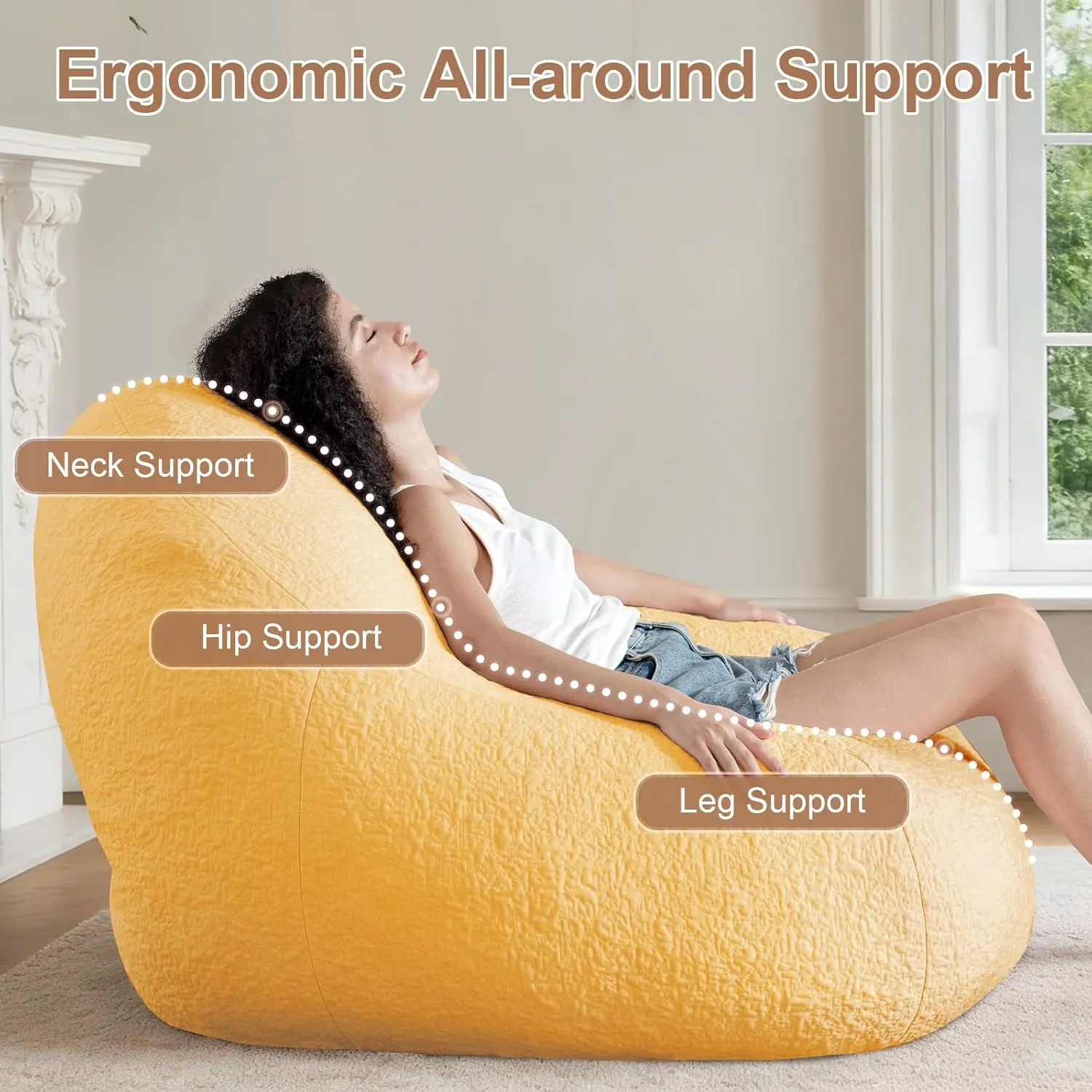 Ergonomic Oversized Design: Enjoy full-body relaxation with our bean bag chair for adults, featuring an ergonomic contour that hugs your body. Perfect for reading, gaming, or lounging. (Note: Bigger than standard! Please check dimensions before purchase.)