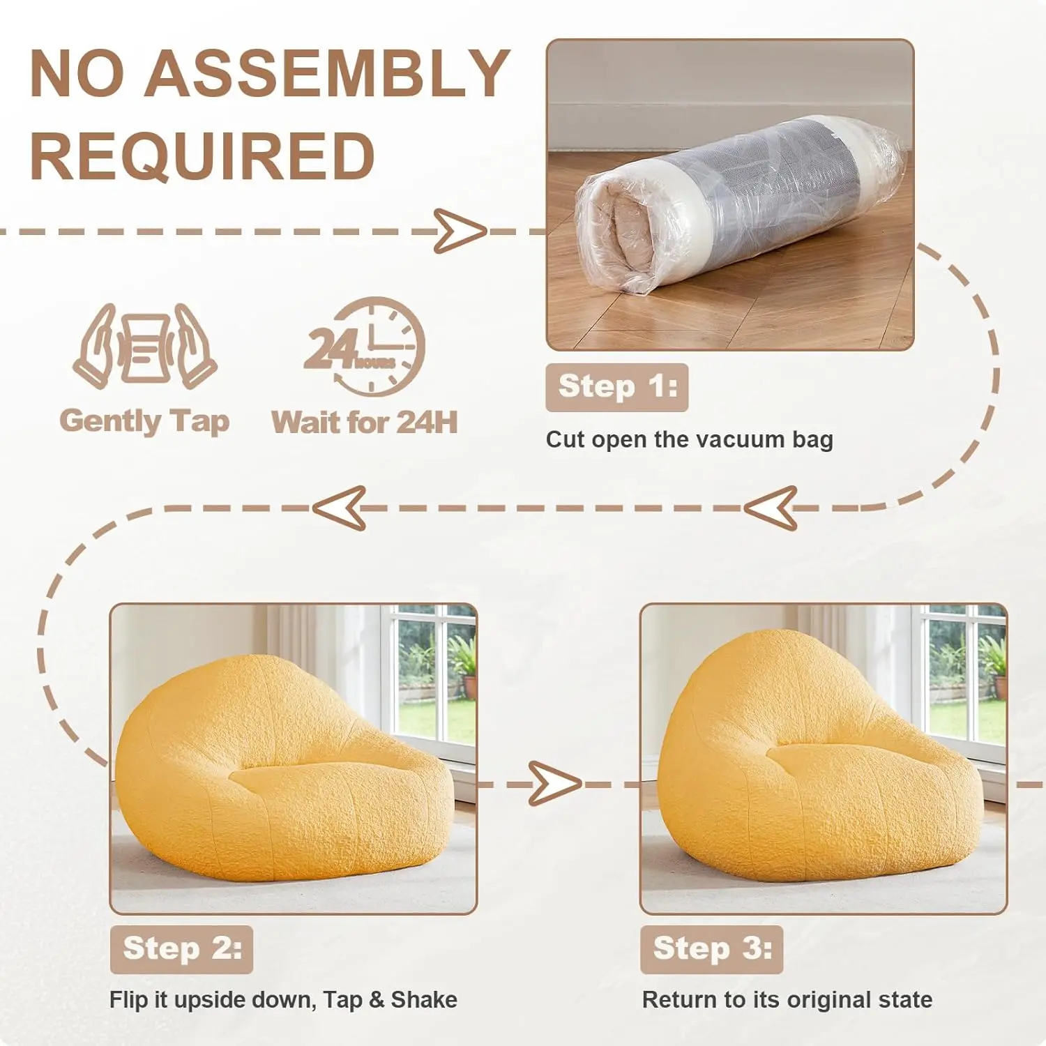 Ultra Soft Chenille: Wrapped in premium chenille fabric, this boneless chair is ultra soft, breathable, and skin-friendly. The cozy texture enhances your home’s warmth, making it an ideal comfy reading chair or adult bean bag for everyday use.
